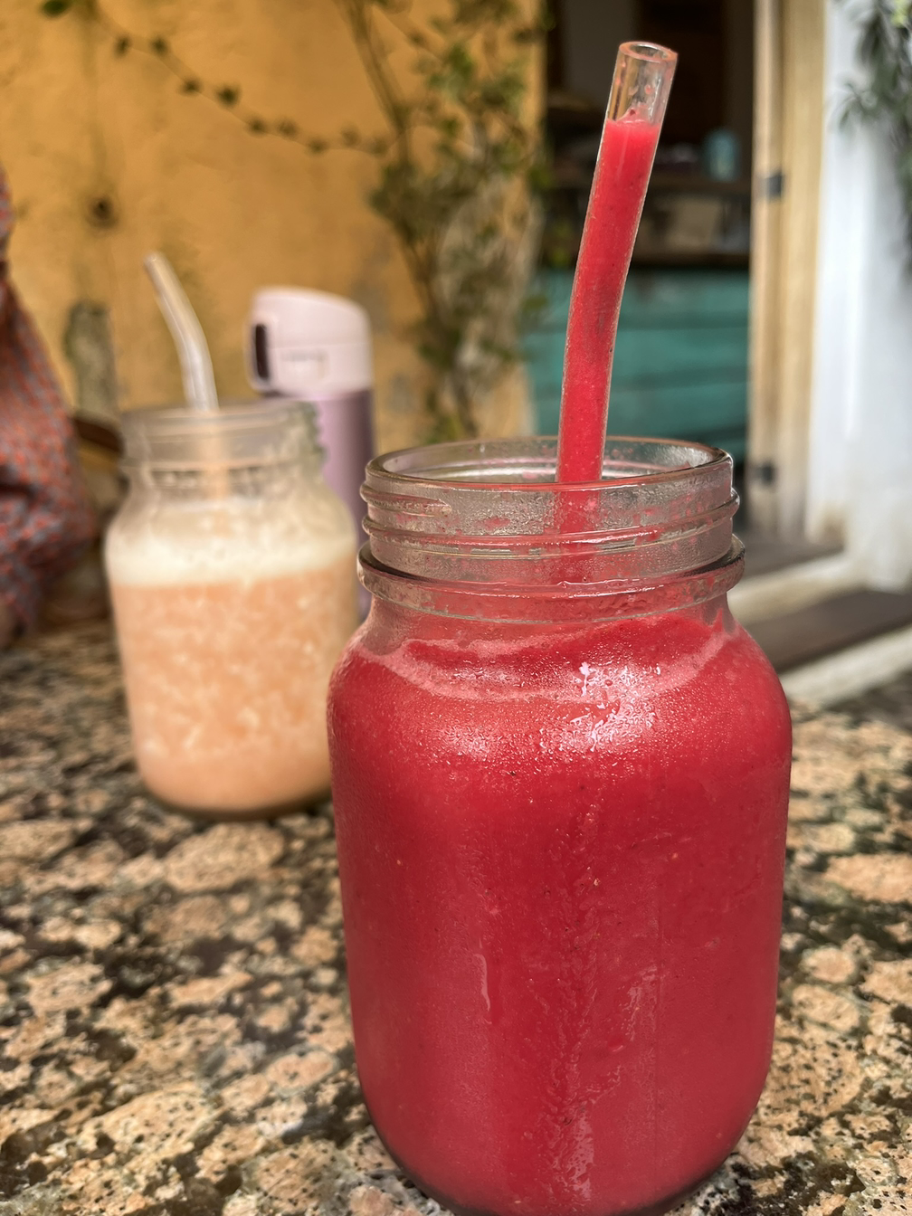 예쁜 가든에 끌려들어 가서 보니 조그만 가게들 사이 “Fat cat cafe”라는 곳이 눈에 띈다. 메뉴를 보니 스무디가 다양하고 커피냄새도 맡으니 허기가 온다. 예쁜 식물들이 인테리어가 불필요할 정도로 아기자기 예뻐서 다른 식당을 찾는 것을 포기하고 주문을 했다.