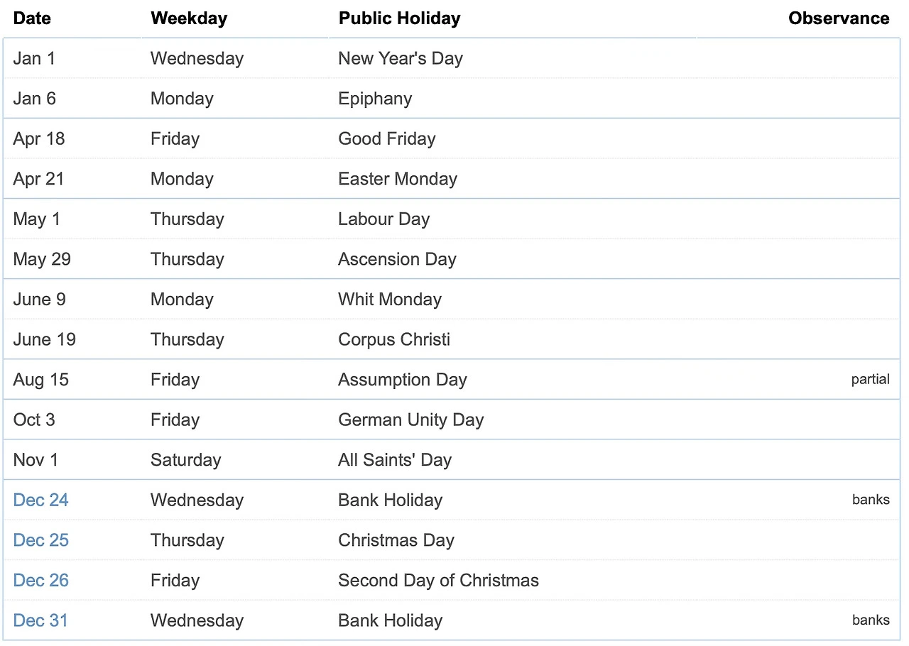 글을 마치며 제가 살던 지역의 독일 공휴일 (2025년 기준)을 남겨봅니다.