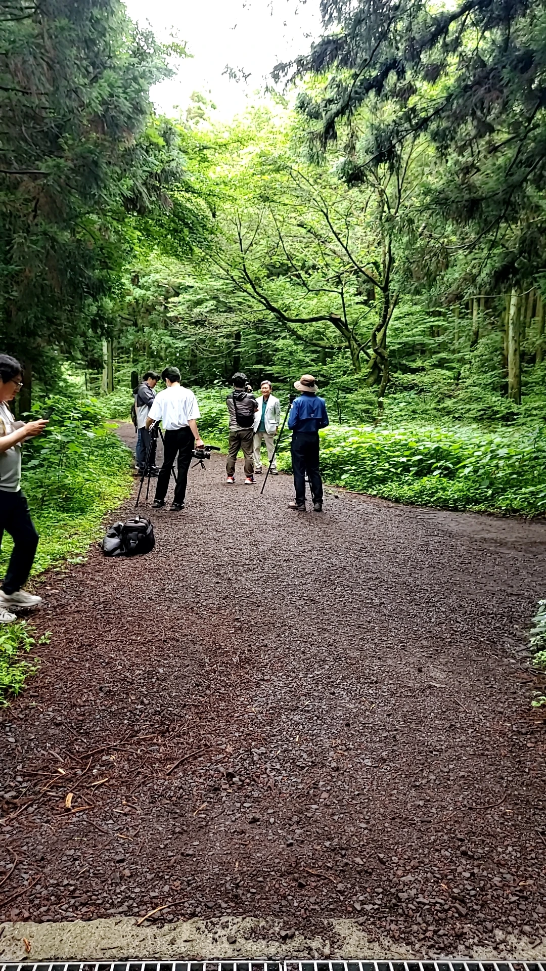 각자의 자리에서 드로잉을 시작한 지 1시간 정도 소요되었을까? 숲길 저 멀리에서 무리를 지은 사람들의 발걸음 소리가 들려왔다. 소리가 점점 가까워지더니 카메라를 든 스텝들과 마이크를 든 리포터가 접근했다.