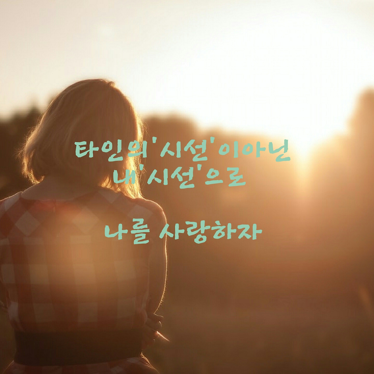 타인의 시선이라는 건 존재하지 않는다.타인의 시선을 의식하는 나만 존재할 뿐이다.그러니 이제 우리 타인의 시선에 자유로워져요.그 대신에 내가 나를 잘 봐주자고요.버텨내느라 애썼다고 오늘도 잘 살아내느라 고생했다고스스를 아껴주고 응원해 주세요.<이 한마디가 나를 살렸다중 김미경>