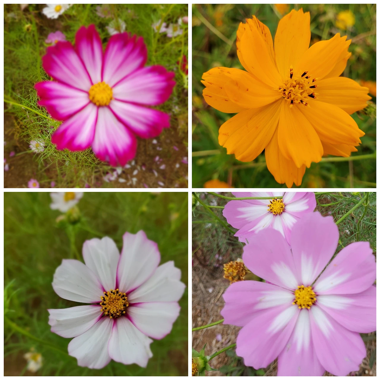각자의 색채감을 발하며 활짝 피어난 코스모스들