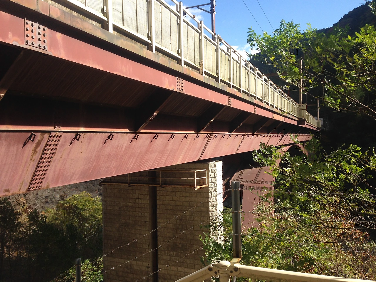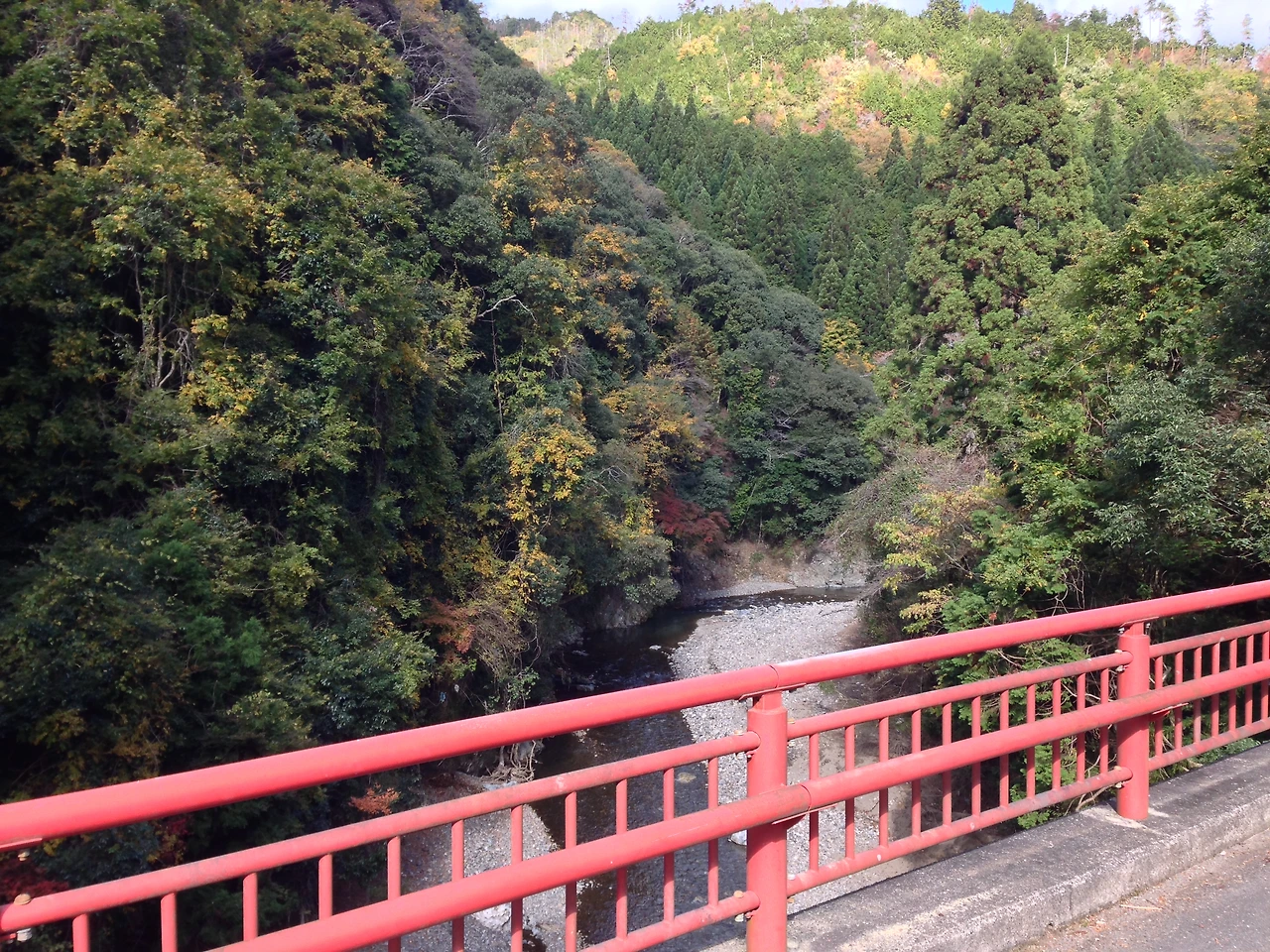 짧은 터널을 통과한 길목에서 냇물 위로 붉은 난간이 보였다. 나는 그곳에서 토시상에게 사진 한 장을 부탁했다.