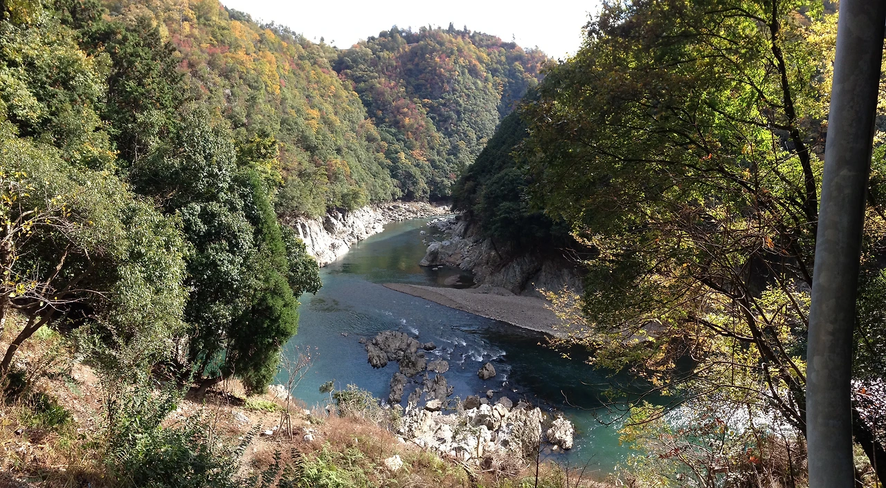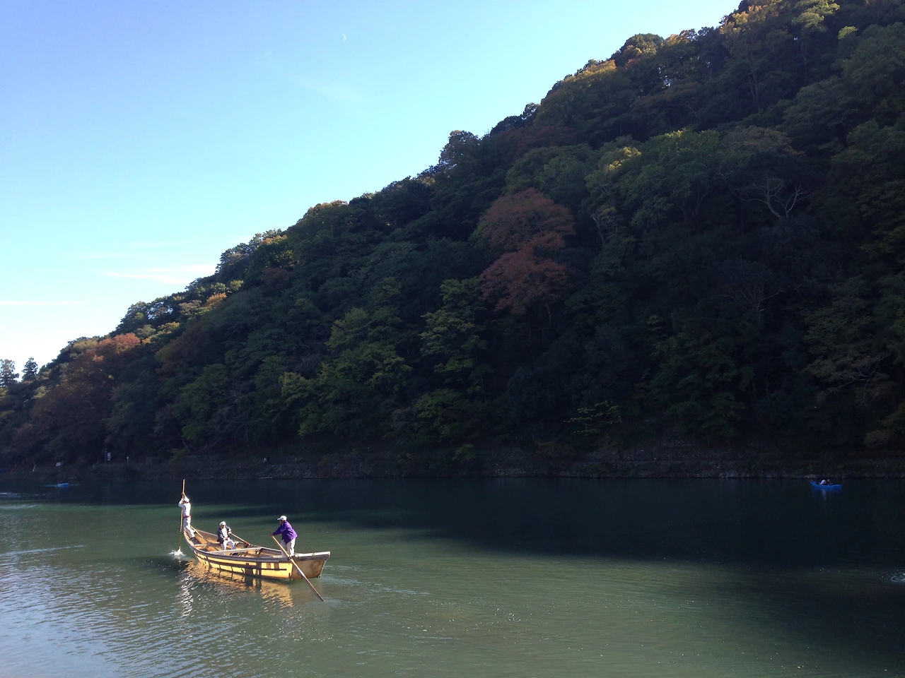 천삼백 년의 역사를 흘러온 호즈가와保津川의 뱃놀이. 그 조각배가 지나가는 물길이 바로 이 아래라는 이야기였다.