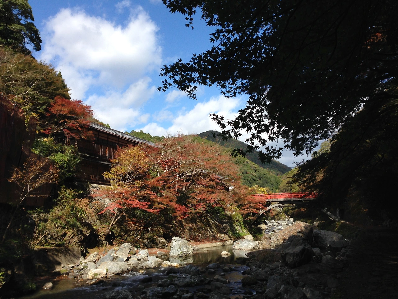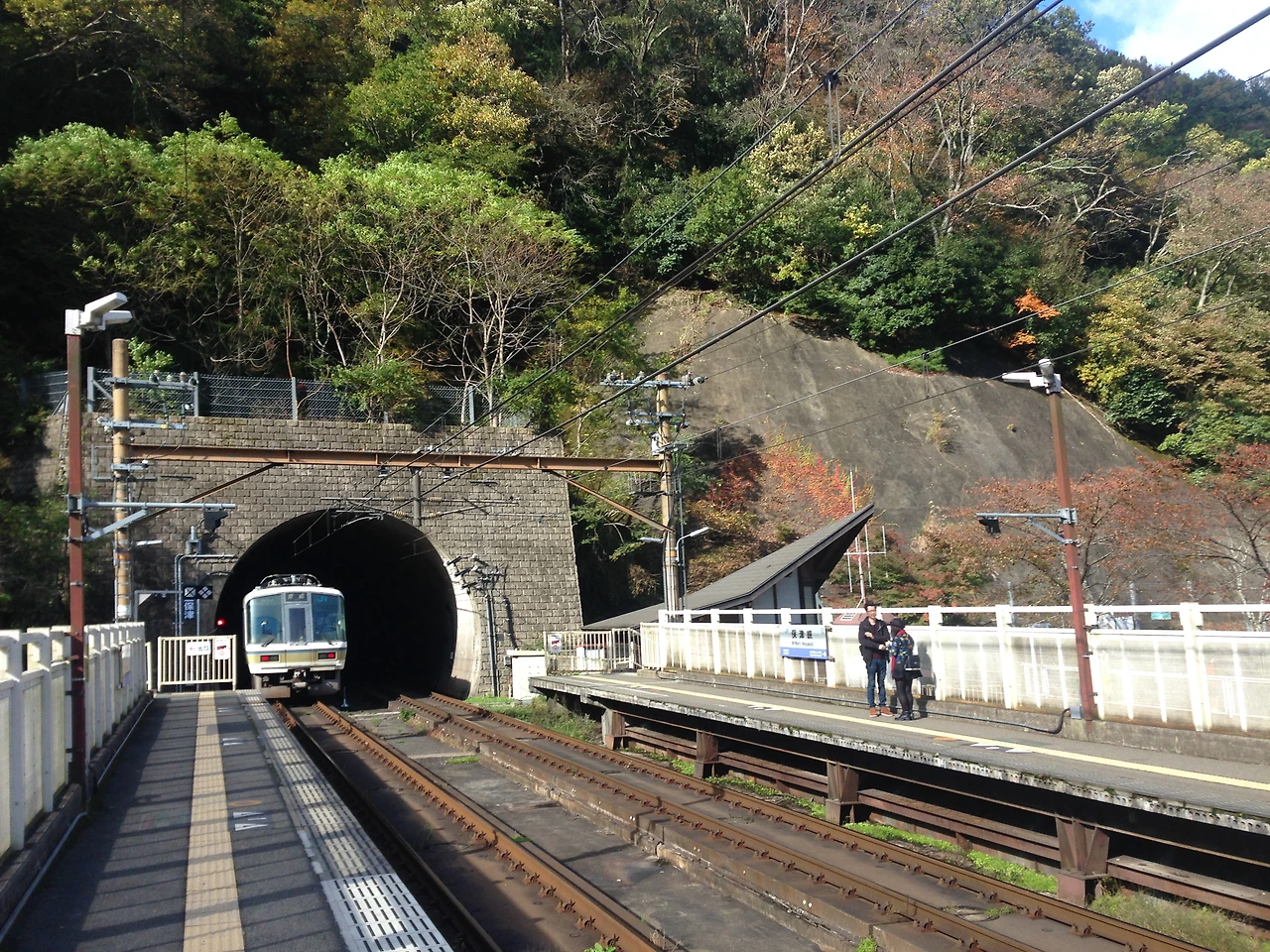 도래인들의 이야기로 학부시절 배웠던 짧은 지식을 몇 마디 풀고 있는 동안 열차 밖 풍경은 어느새 울긋불긋하게 변해간다. 가츠라가와를 건너 아라시야마의 북쪽 기슭에 난 터널로 들어간 열차는 곧 계곡의 한가운데로 빠져나왔다. 다리 위에 세워진 독특한 역, 호즈쿄역이다.