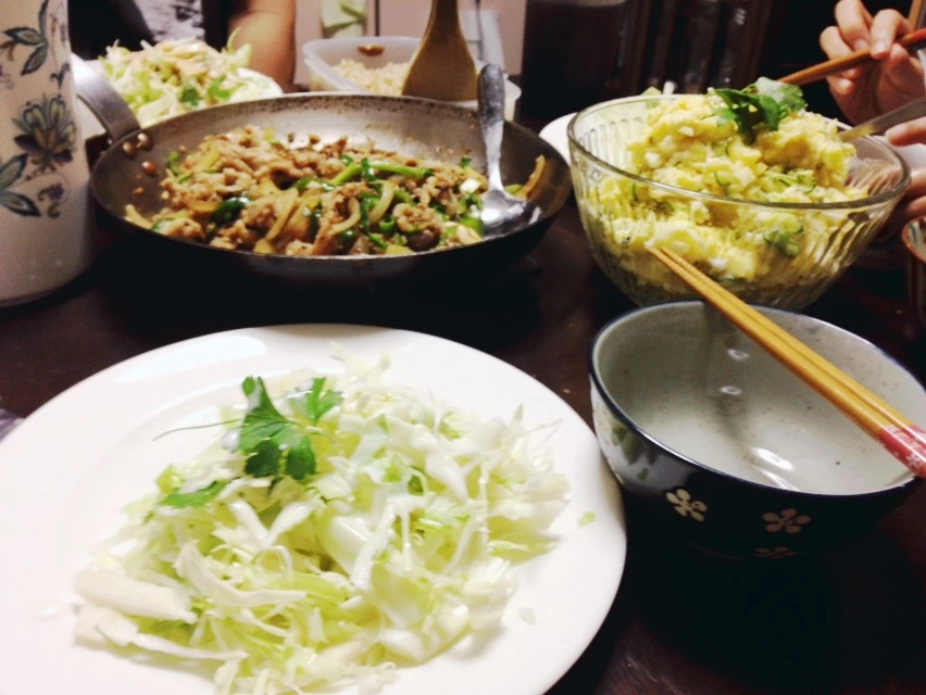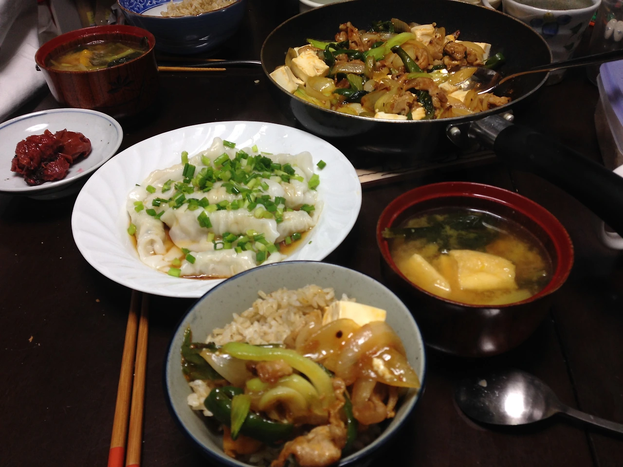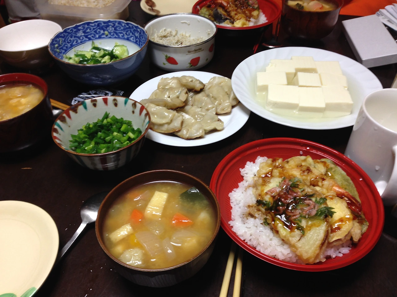 또 하나의 즐거움이 있다. 하루일을 마치고 집으로 돌아가기 전에 여관 식구들이 모두 모여 먹는 따듯한 식사가 바로 그것이다. 그것들은 공을 들여 만들어내는 요리는 아니다. 특별한 날이 아닌 이상 식구들이 일을 마무리 지을 두세 시 무렵 간단히 준비하기 시작해서 후다닥 해치우는 그런 소박한 집밥들이다. 고기 야채 볶음이나 돼지 생강 구이, 만두 튀김 등이 단골 메뉴. 일본의 여느 가정집에서나 볼 수 있을 평범하고 검소한 식탁과 별반 다를 것이 없다. 마유미 씨의 베이컨 카레나 새우 크림스튜 정도가 가끔 나오는 특식일까. 재료가 마땅치 않은 날엔 미야자키에서 보내준 밑반찬들을 꺼내어 미소시루만 한 솥 끓여 곁들여도 충분하다.