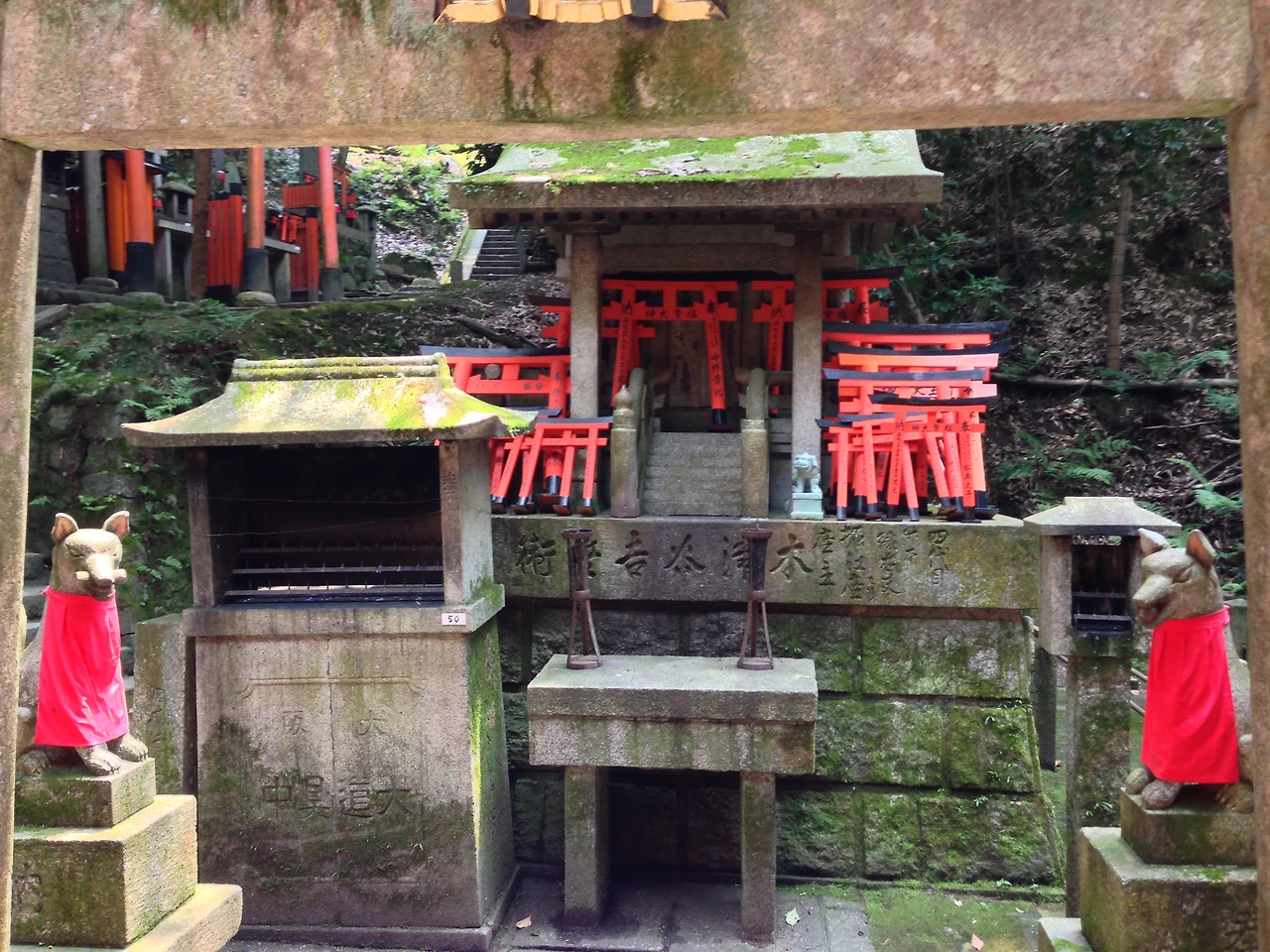 태고로부터 인간이 바라 왔을 가장 원초적인 기원이 이것 말고 무엇이 있었을까. 물론 현대에는 많은 기업들과 개인들의 더 복잡하고 세련된 욕망들이 붉은 토리이에 새겨져 이 곳 후시미 회랑을 이루고 있지만.