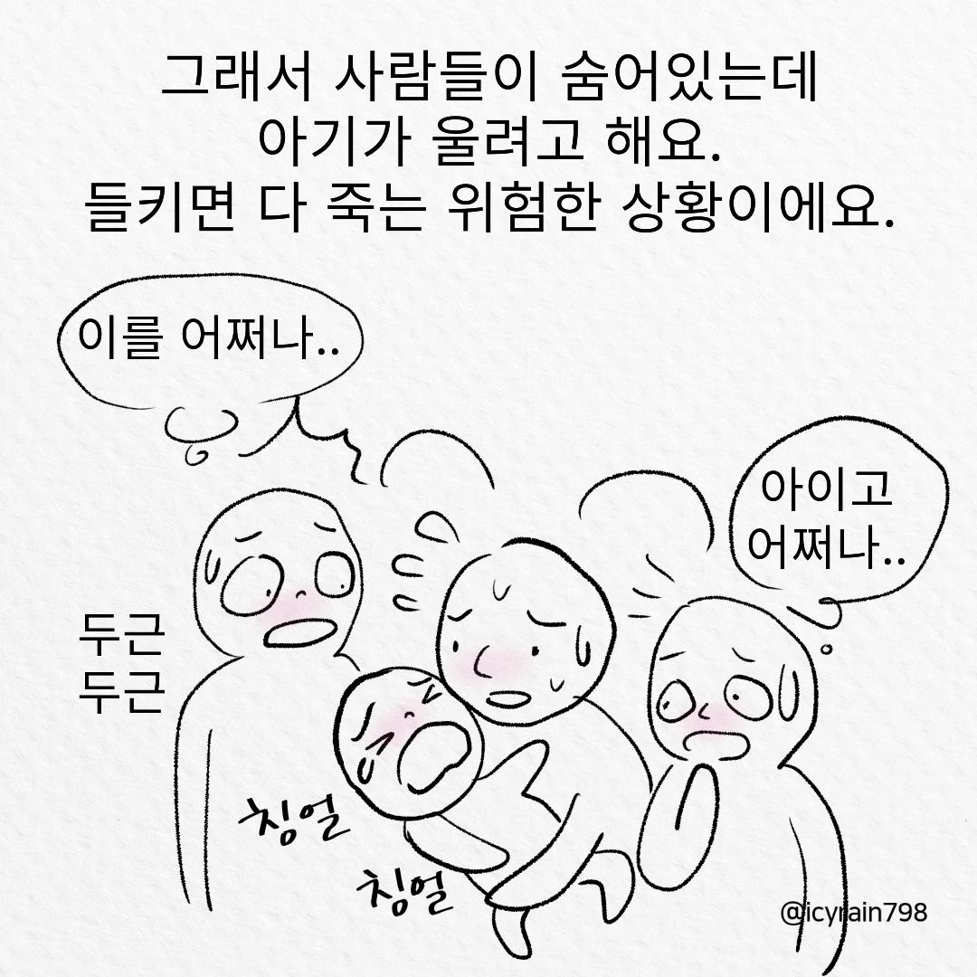 3. 아기가 울면 살인마에게 들켜서 모두 위험에