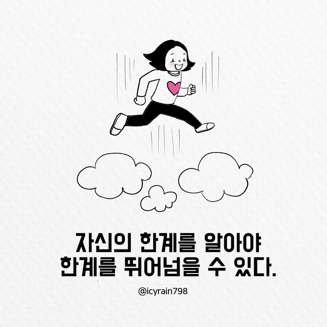 자신의 한계를 알아야 한계를 뛰어넘을 수 있다.