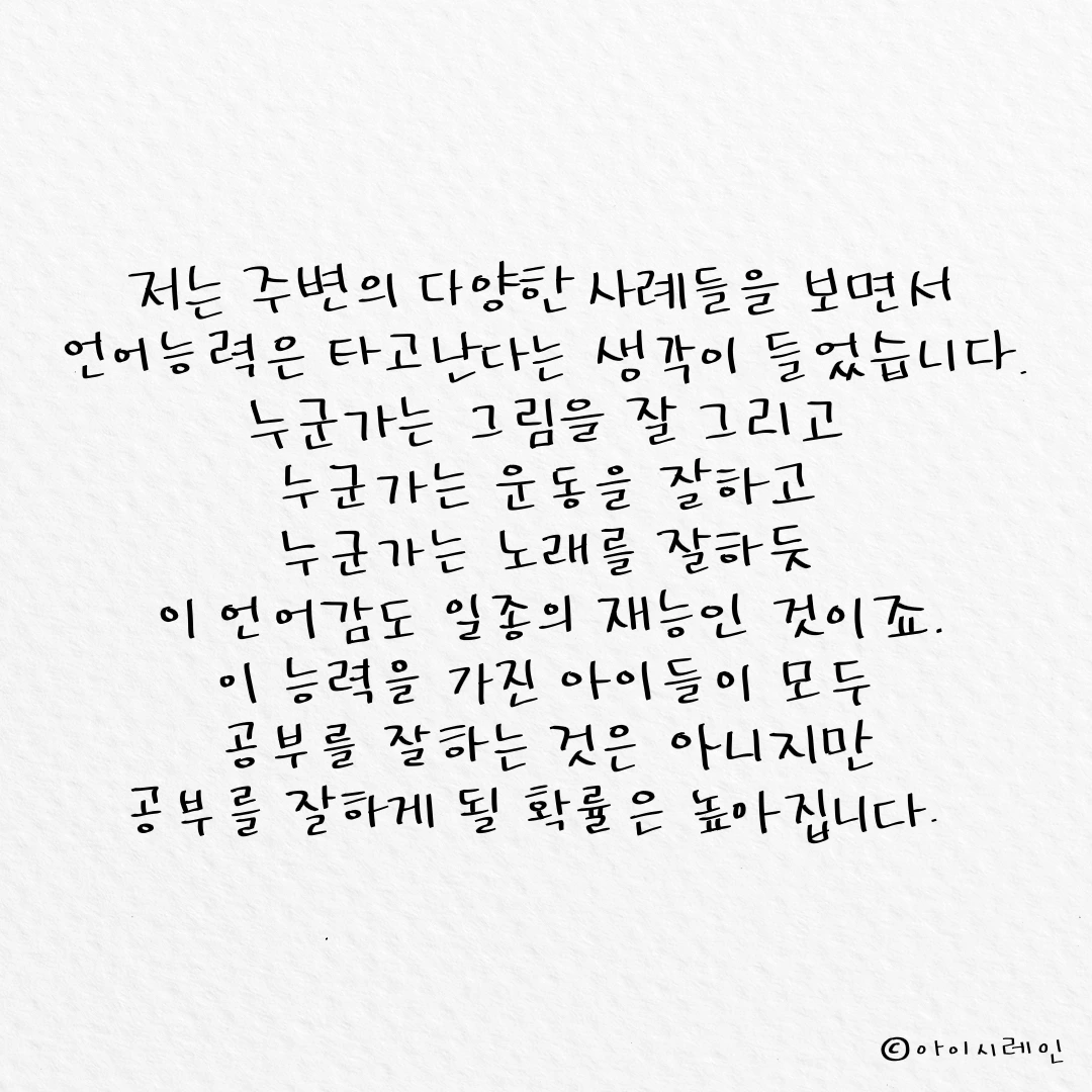 저는 주변의 다양한 사례들을 보면서 언어능력은 타고나는 것이라는 생각이 들었습니다.