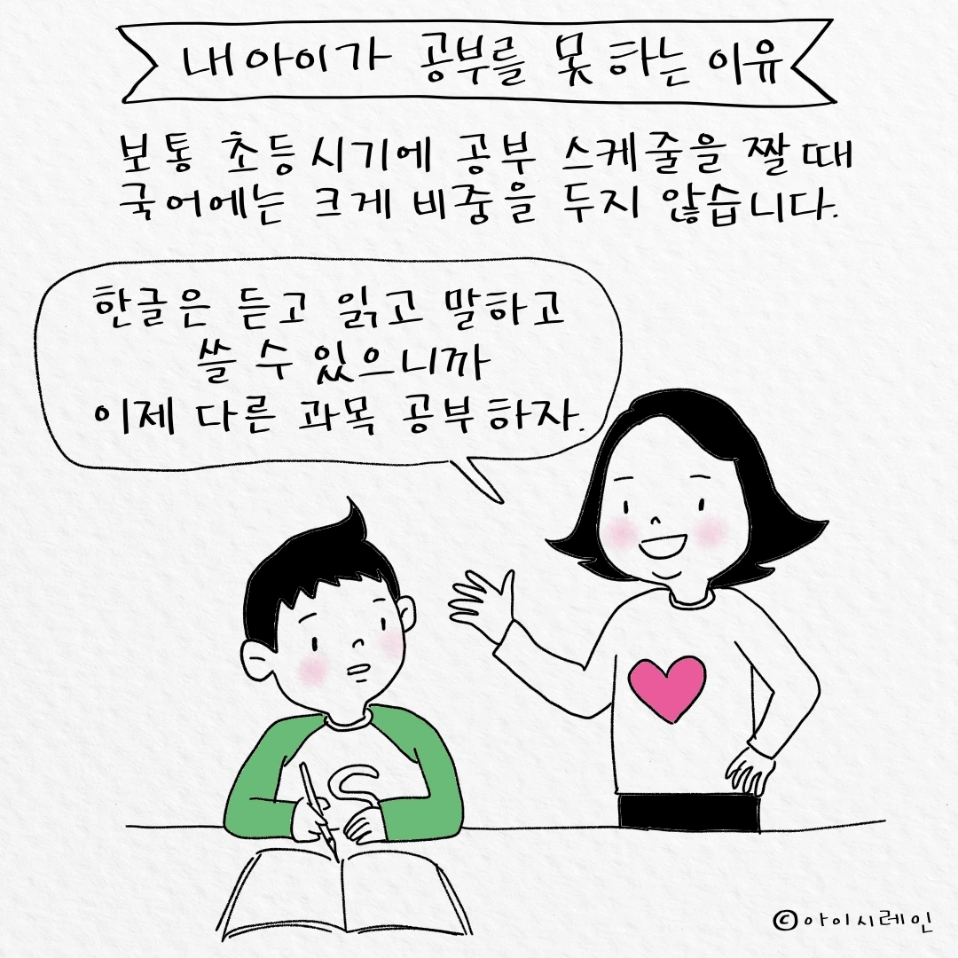 보통 초등시기에 공부 스케줄을 짤 때 국어에는 크게 비중을 두지 않습니다.