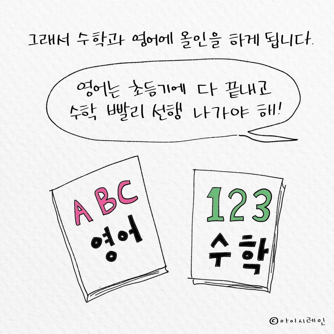한글은 듣고 읽고 말하고 쓸 수 있으니 자연스럽게 다른 과목으로 눈을 돌립니다.