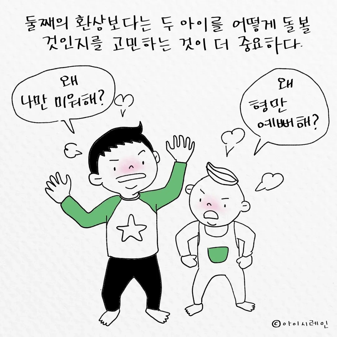 둘째를 갖기 전에 이런 부분을 부부가 인지하고 충분한 대화로 잘 극복하길 바랍니다.