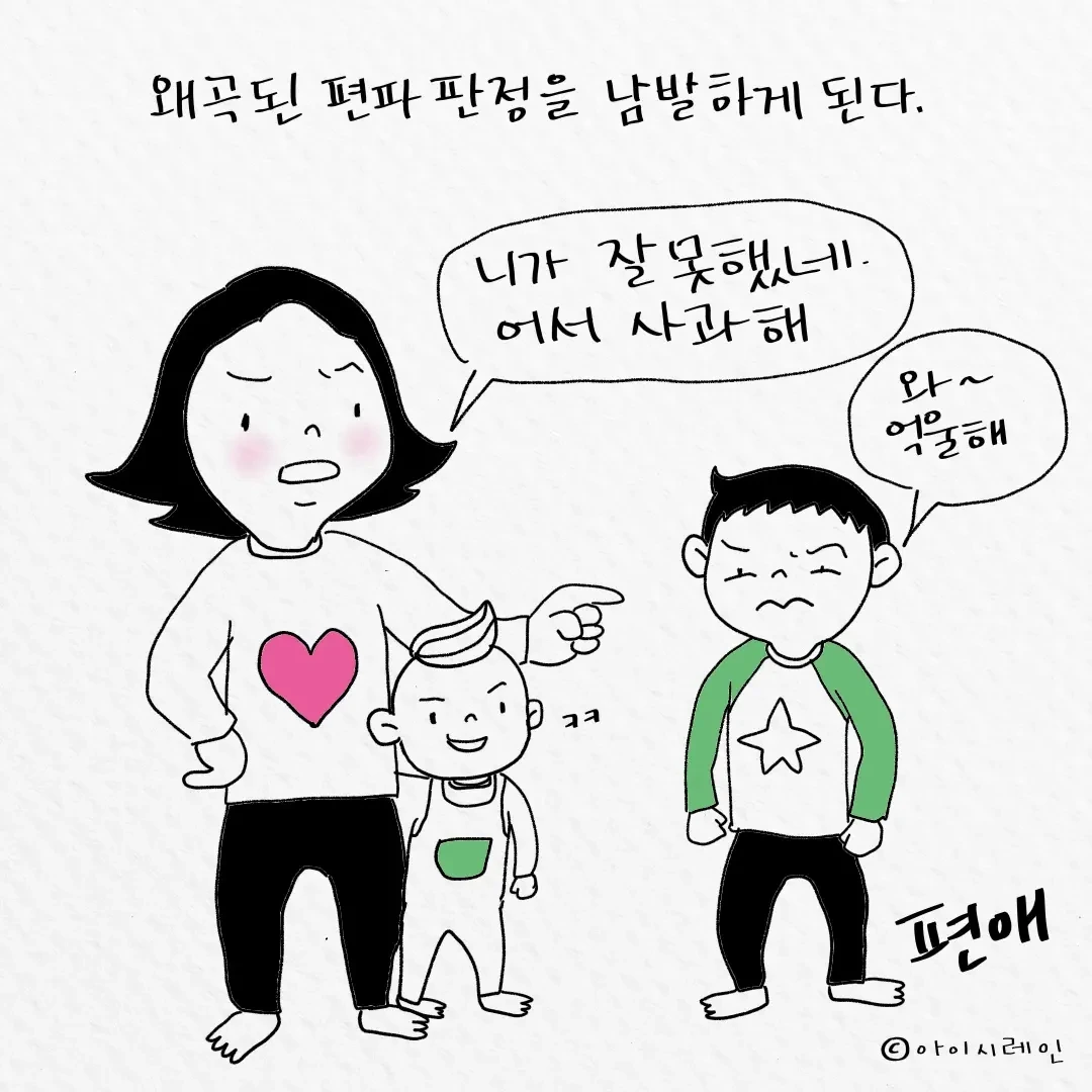그러나 갈등 상황이 불편한 부모는 문제의 상황을 빨리 종료시키기 위해 유독 한 아이에게 문제의 책임을 떠안게 하기도 합니다.