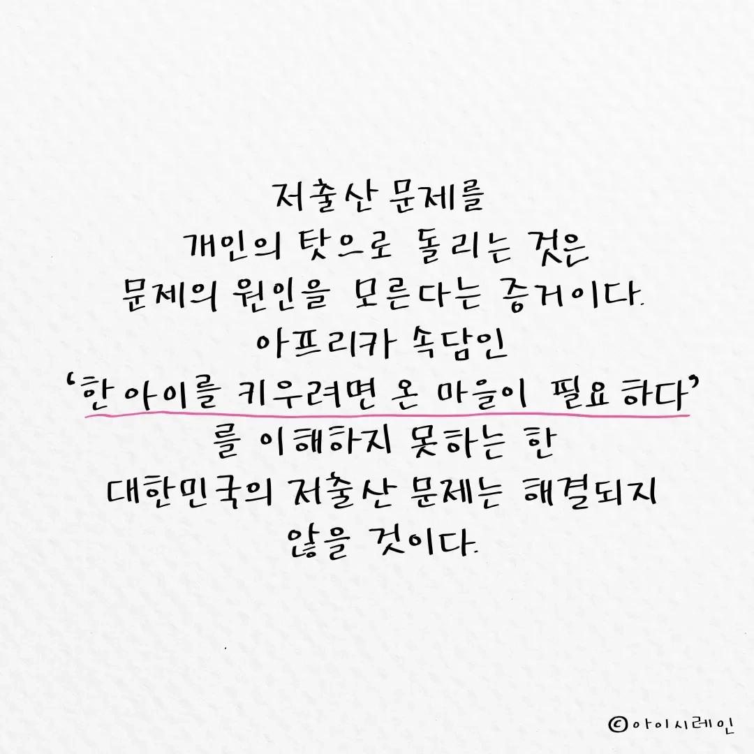 저출산을 개인의 문제로만 여기며 출산을 거부하는 사람들을 이기적으로 몰아가는 사람들을 보면 정말 안타깝다.