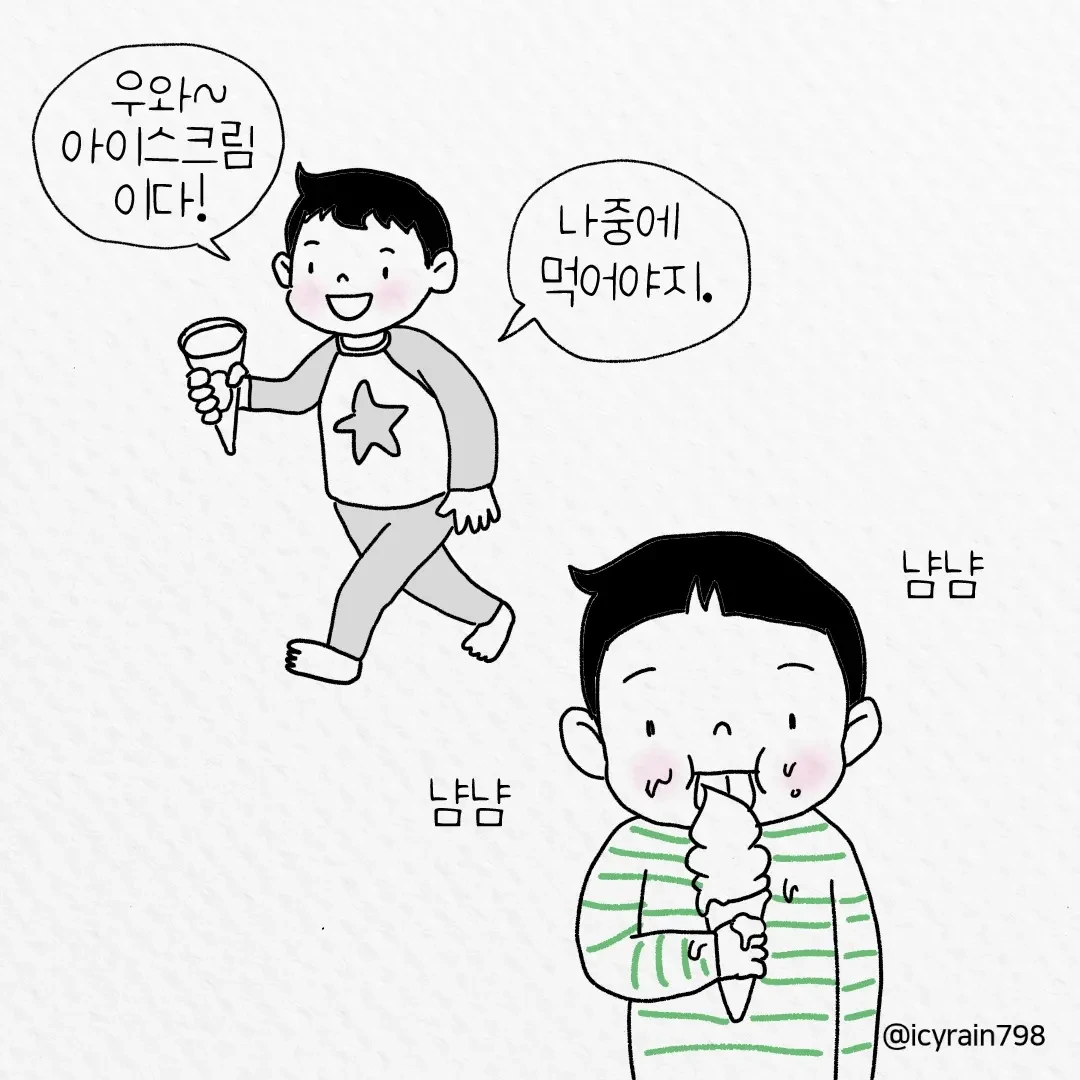 우리 집에는 미래형 아이와 현재형 아이가 살고 있다.
