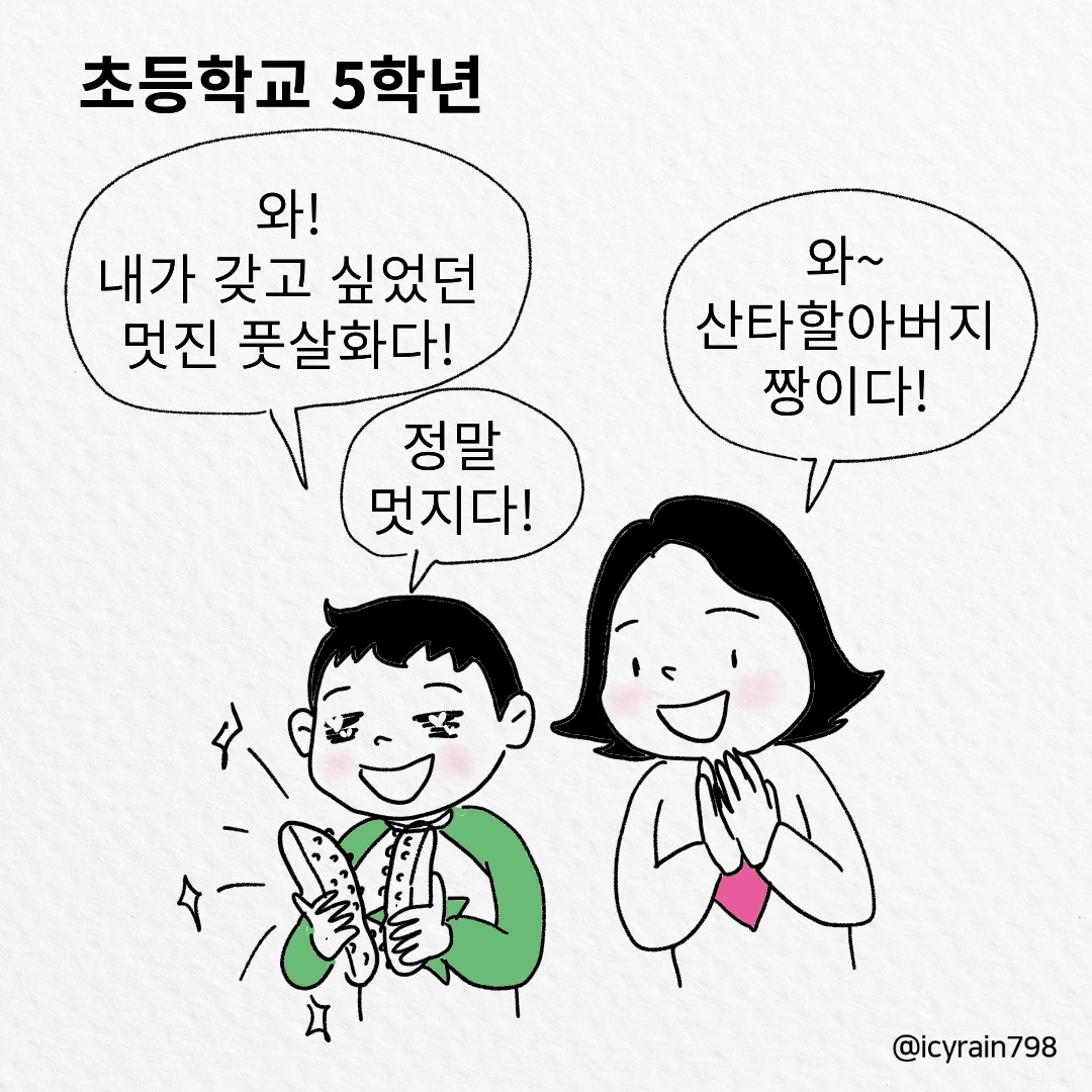 초등학교 저학년이었던 2학년까지는 산타를 손꼽아 기다렸어요.