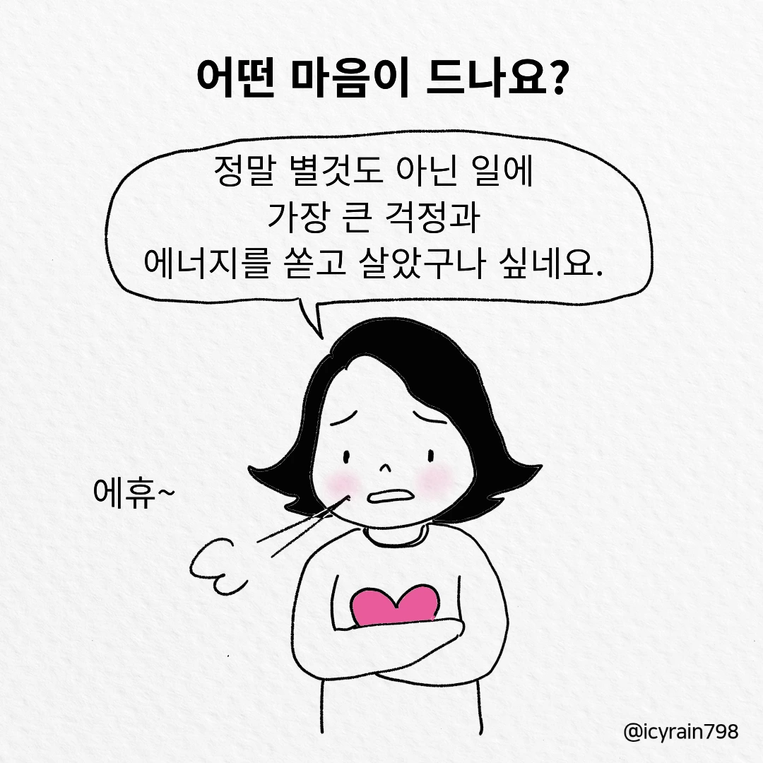 미래에 가서 또 이런 말을 반복하지 않기 위해 쓸데없는 걱정 따윈 모두 쓰레기통으로 날려 보내는 건 어떨까요?