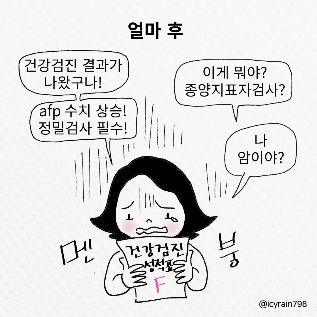 어느날 직장 건강검진 결과지에서 정상이었던 afp 수치(혈청알파태아단백/간암의 종양표지자)가 정상 범위를 벗어나면서 한동안 마음을 졸이기도 했었다.