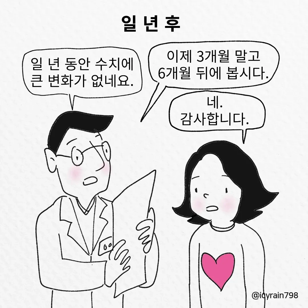 다행히 수치가 정상범위를 많이 벗어난 것이 아니었고 일년간의 추적검사 결과, 특별한 변화가 없어 잠시 중단했다.