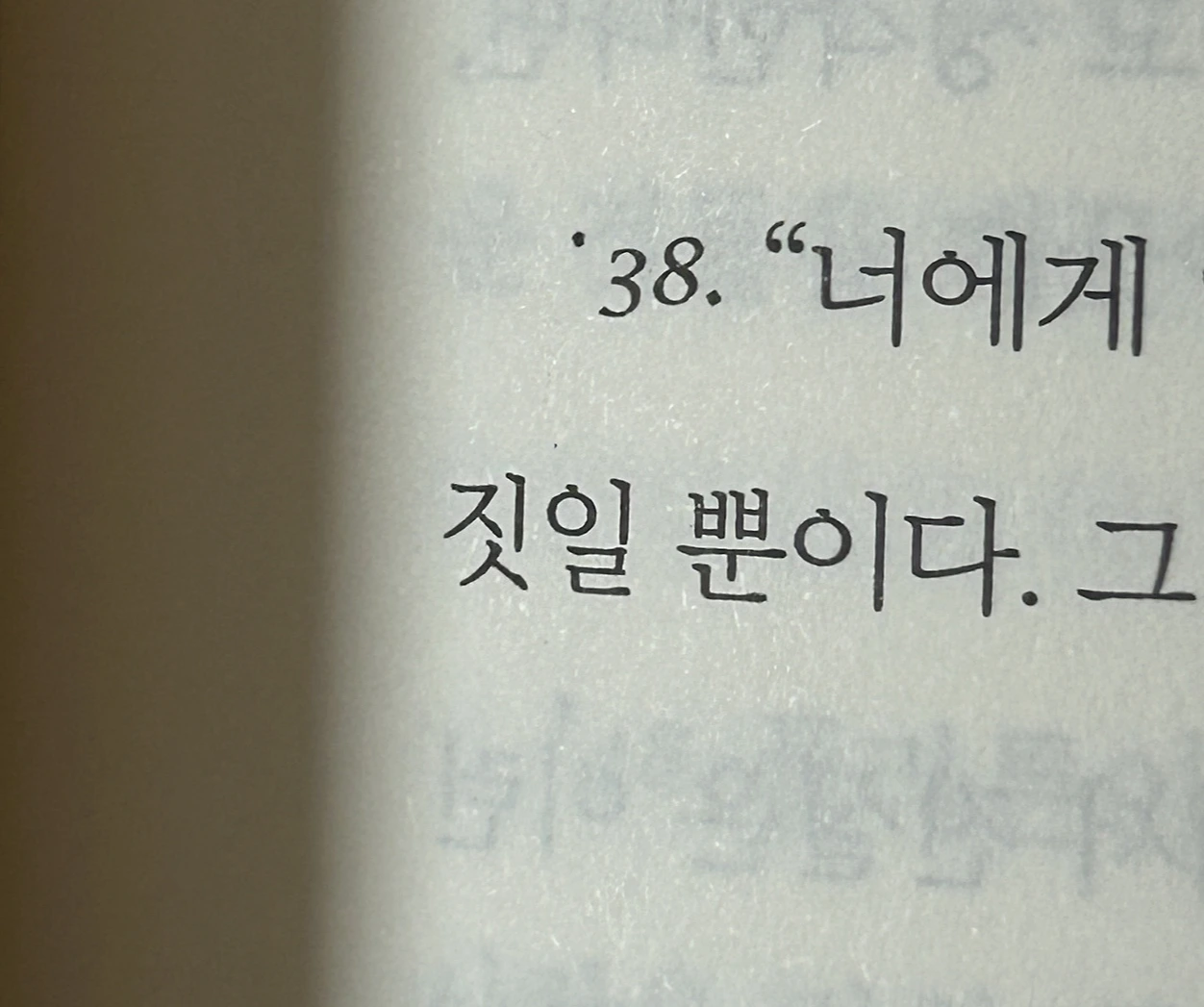 이게 무슨 말이냐 하면 이 책에는 기승전결이 없이 그냥 매 순간이 진액이라는 것입니다. 말하자면, 하이라이트 모음집입니다. 그렇기 때문에 줄을 긋거나 형광펜으로 중요한 부분 혹은 마음에 닿은 부분을 표시하면 책이 아주 더러워지고 난잡해질 겁니다. 모든 문장이 중요한 문장이기 때문이죠.