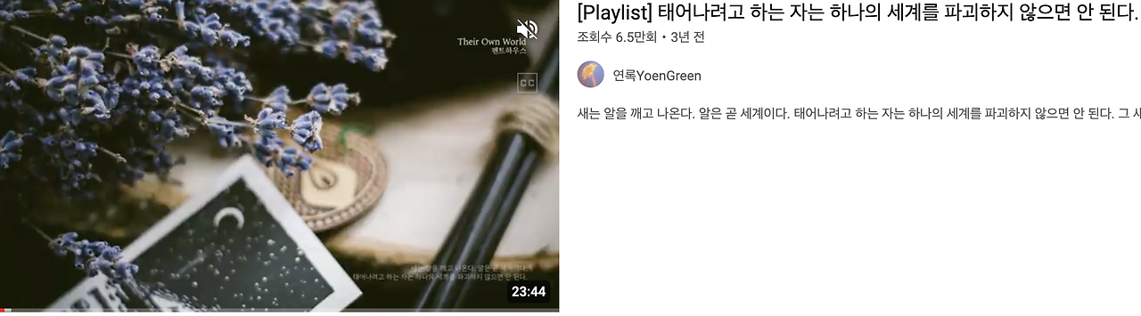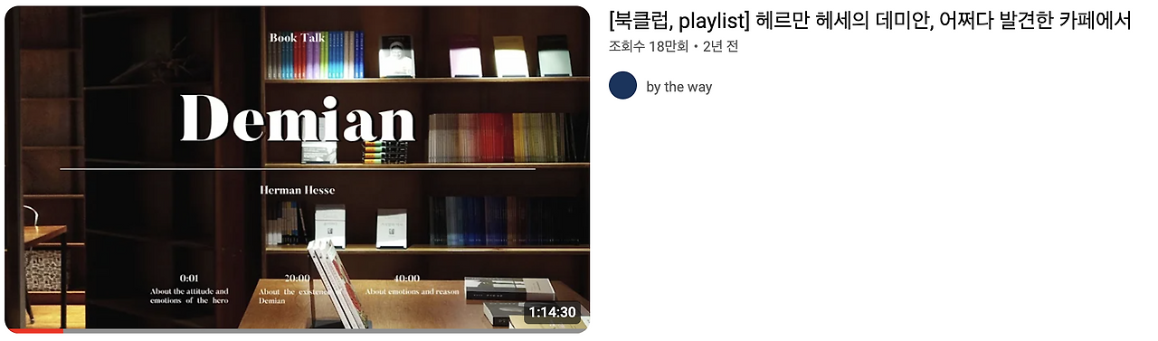 소설 데미안을 테마로한 많은 플레이리스트를 유튜브에서 찾으실 수 있습니다!
