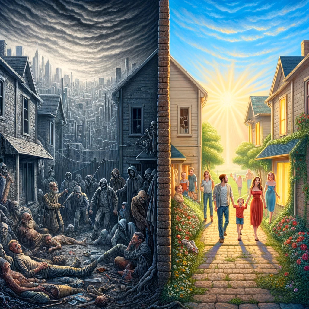 하지만 우리는 반대의 상황도 생각해 볼 필요가 있다. 만일 싱클레어가 신실한 기독교 집안, 즉 밝은 세상에서 태어나지 않았더라면? 부랑자, 주정뱅이, 강도가 넘치는 어두운 세상에서 태어났다면? 그렇다면 애초에 '싱클레어'가 아니고 '데미안'이었을 것이다. 그리고 '싱클레어'가 데미안을 구원해 주는 이야기가 전개되었을 수도 있다. 소설 속 싱클레어와는 달리 기독교적 가치관 (전통적 도덕규범)이 완전히 결여된 사람이 주인공이었다면, 당연히 반대의 이야기가 진행되었으리라는 예상을 할 수 있다.