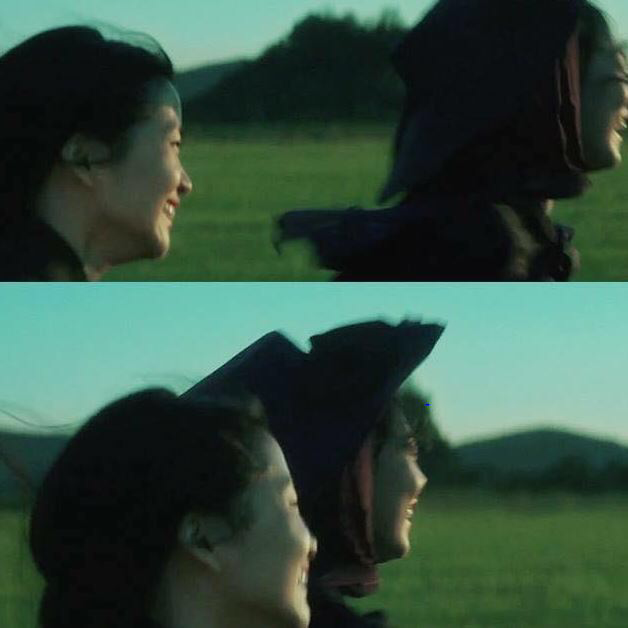 이 영화의 아름다움은 '환상'이란 폐쇄된 구조 속에서 가능한 아름다움이다. 그녀들의 사랑이 까발린 것은 남성들의 가짜세계와 판타지의 우스꽝스러움이지만, 역설적으로 영화는 여성들의 사랑 역시 판타지로 만든다. 역사적 상황과 계급, 국경의 모든 경계를 지워버린 채, 두 여성의 벌거벗은 몸과 체위만을 비추며 끝나는 영화는 단지 아름다움으로 모든 것을 지워버리는 꿈만 같다. 그들이 어딘가로 정착할 것인지, 사랑이 도달한 곳은 어디인지 하는 질문따위가 무슨 소용인가 싶게 만드는 그녀들의 섹스. 과거도 미래도 필요없다는 듯 현재의 쾌락에만 종사하는 그녀들의 사랑. 마치 낭독회에서 인형 위에 올라탄 히데코를 바라보던 남성관객이 된 기분으로 엔딩의 섹스씬을 보았다. 오로지 여성의 신체가 가지는 아름다움으로 사랑을 찬미하고 육욕을 판타지한 것인가하는 불쾌감을 느끼면서. 아마도 여성들의 사랑과 연대가 환상으로 그려졌기에 거부감 없이 소비될 수 있었을 것이다. 현실적 근본 없는 아름다움의 허망함만을 남기면서.