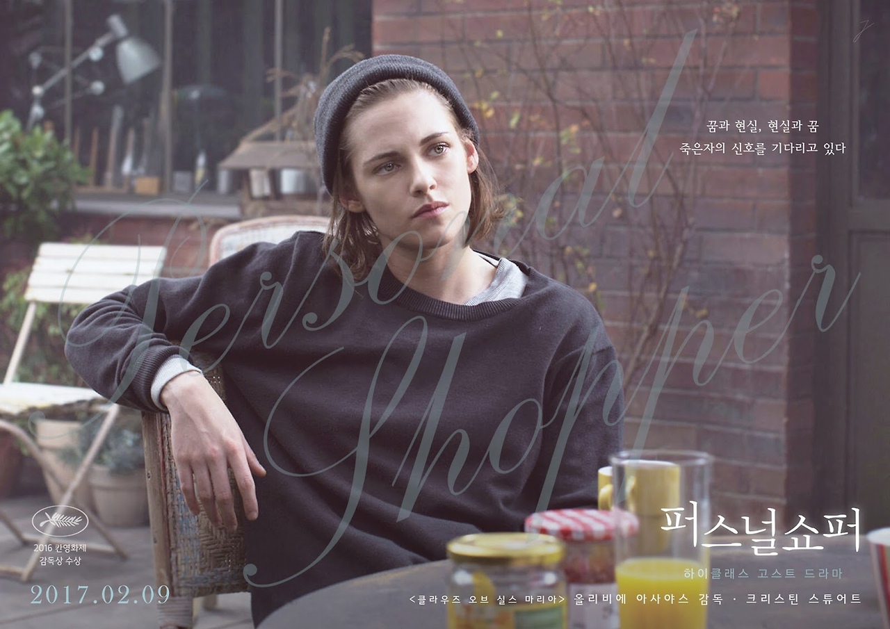 <빅쇼트>가 세계를 추상하는 물질세계의 모순을 구체로써 풀어냈다면, <퍼스널 쇼퍼>는 추상 세계에 갇힌 현대인의 상황을 비유와 허구의 '추상'으로 제시하기에 성공한 작품이다. 영화를 사 유한 영화인 <이마 베프>(1996)처럼 올리비에 아사야스는 가상과 영화의 언어를 탐구하기를 멈 추지 않았다. <퍼스널 쇼퍼>는 그의 전작인 <클라우즈 오브 실스마리아>(2014)에서 묘연히 사 라진 비서 발렌틴(크리스틴 스튜어트)에 렌즈를 가져다 댄 듯하다. 실제로 <퍼스널 쇼퍼> 모린 (크리스틴 스튜어트)은 '유럽 여배우에게 고용된 미국인 비서'란 설정에서 발렌틴과 비교되곤 했 다. <클라우즈 오브 실스마리아>에서 크리스틴 스튜어트는 원본을 모사하는 그림자로, 어디서까 지가 허구이고 실제 욕망인지를 가늠하기 어려운 미장 아빔(mise en abyme)의 이야기 속에서 주인공을 홀리고 사라진 허깨비였다면, <퍼스널 쇼퍼>에서 크리스틴 스튜어트는 네트워크 매개 자로 피로와 불안에 시달리는 주인공이다. 모린은 완전히 동떨어진 두 이야기를 하나로 녹여낸 다. 하나는 죽은 이란성 쌍둥이 루이스 영혼을 기다리는 '영매'로 텅 빈 저택에서 영혼을 접한 다. 다른 하나는 유명인 키라(노라 본 발드스타텐)의 '퍼스널 쇼퍼'로 부띠끄를 분주하게 오가며 상품을 고른다. 서로 다른 두 이야기는 두 세계의 매개자인 모린을 중심으로 뒤엉킨다. 남자인 지 여자인지조차 모호하고 기괴하지만, 분명한 공포로서 실재하는 '유령(영혼)'과 욕망을 자극하 며 다가온 unknown의 '메시지'는 삶과 죽음, 실재와 허구 사이에서 온 불안의 원천이다. 모린은 살인 사건에 관여되지도, 루이스의 영혼을 만나지도 않는다. 그저 자기 자신을 인지하는 순간 영화는 끝나고 만다.