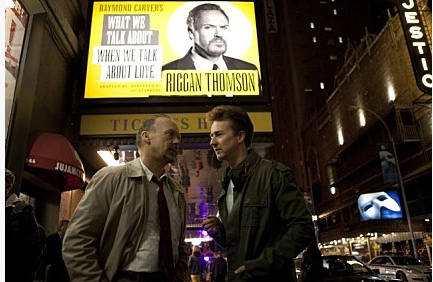 <버드맨>의 인트로에서 레이먼드 카버의 '레이트 프래그먼트'를 직접 인용한다. 지구상에서 사랑받는 존재라고 느끼는 것, 그것은 누군가의 관심과 인정이다. 레이먼드 카버의 원작을 각색한 리건의 <사랑을 말할 때 우리가 이야기 하는 것>역시 같은 내용이다. “나는 왜 항상 사랑을 구걸해야 하지? 난 당신이 원하는 남자가 되고 싶었어. 매일 다른 남자가 되려 애를 쓰며 산다고.” 극중 주인공 '멜'의 대사를 빌어 반복적으로 '사랑해 달라'며 사랑을 갈구하는 리건. 이 대사는 극중 부인인 테리(나오미 와츠)가 아닌, 리건을 바라보는 무대의 관객에게 던져진다. 그토록 인정받고싶어하는 리건은 모두에게 '무시'당하고 있었다.
