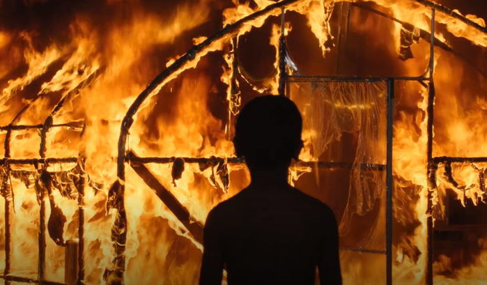 '눈물을 흘리고 울어본 적이 없다', '자신을 위해 제물을 만들고 먹는 행위'라하던 요리철학(?), 화장실에 가지런히 정돈된 여자 악세서리들, 그리고 '두 달 간격으로 비닐하우스를 태운다'던 벤의 말을, 종수는 살인에 대한 '메타포'로 읽고 두려움에 전율한다. 쓸모 없고 지저분해서 무관심에 방치된 비닐하우스를 불태우는 것은 마치 재난을 일으키는 비에 아무런 판단이 없는 것처럼 밸런스를 위한 자연 도덕적인 행위라고 생각하는 벤. 그의 권력과 힘은 비가 홍수가 되어 사람을 죽이는 재난처럼 너무나 자연적인 현상의 일부이며, 경찰이란 국가의 관심마저도 사지 못하는 상황에서 그들의 권력 자체가 법의 일부로 기능하는 폭력을 보여준다. 종수는 넘볼 수도, 가질 수도 없는 폭력 앞에 두려움을 느끼면서도 희열을 상상한다. 활활 불타는 화염 앞에 선 어린아이 종수는 뜨거운 재를 맞아 두려우면서도 희미하게 새어나오는 미소를 감추지 못한다.