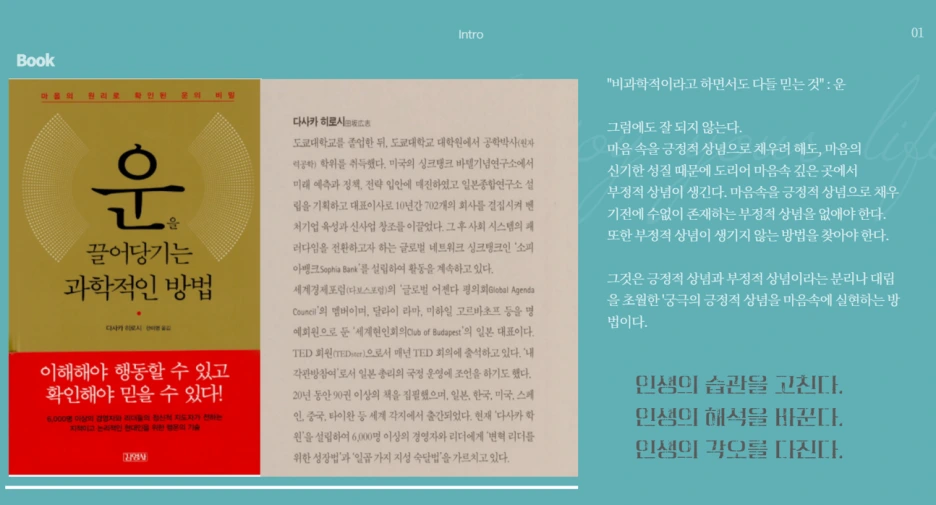'운을 끌어 당기는 과학적인 방법'이라는 다사카 히로시 책을 정리해서 발표했다.