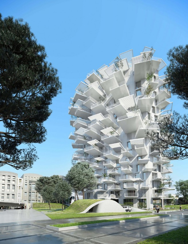 L’Arbre Blanc라는 이름의 빌딩은 '흰색 나무'라는 뜻을 갖고 있습니다. Sou Fujimoto Architects, Nicolas Laisné, Dimitri Roussel, OXO Architectes 등 4개의 건축 디자인 회사가 협업으로 완성되었습니다. 주거와 사무, 문화 공간이 마련된 복합 빌딩의 가장 큰 특징은 바로 발코니입니다. 각 공간에서 밖으로 나올 수 있는 발코니가 매우 넓어서 마치 나무에서 수많은 가지들이 뻗혀있는 것처럼 보입니다. 가장 큰 아파트의 면적은 35 제곱미터이며 발코니의 면적은 무려 7 제곱미터나 됩니다.