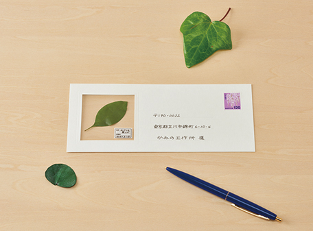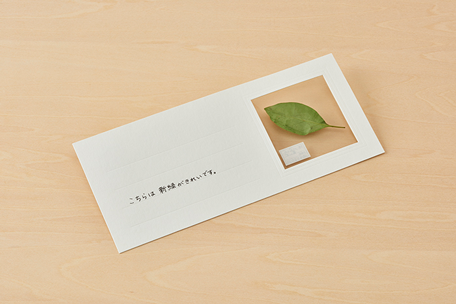 이 카드에는 투명한 플라스틱 창문이 달려있습니다. 창문 안에 나누고 싶은 상징을 담는 것이죠. 나무잎이나 꽃, 여행 티켓이나 사진을 넣고 간단한 메시지를 남깁니다. 글만 쓰는 것보다 더욱 감성적이고 감각적으로 추억을 나눌 수 있습니다.