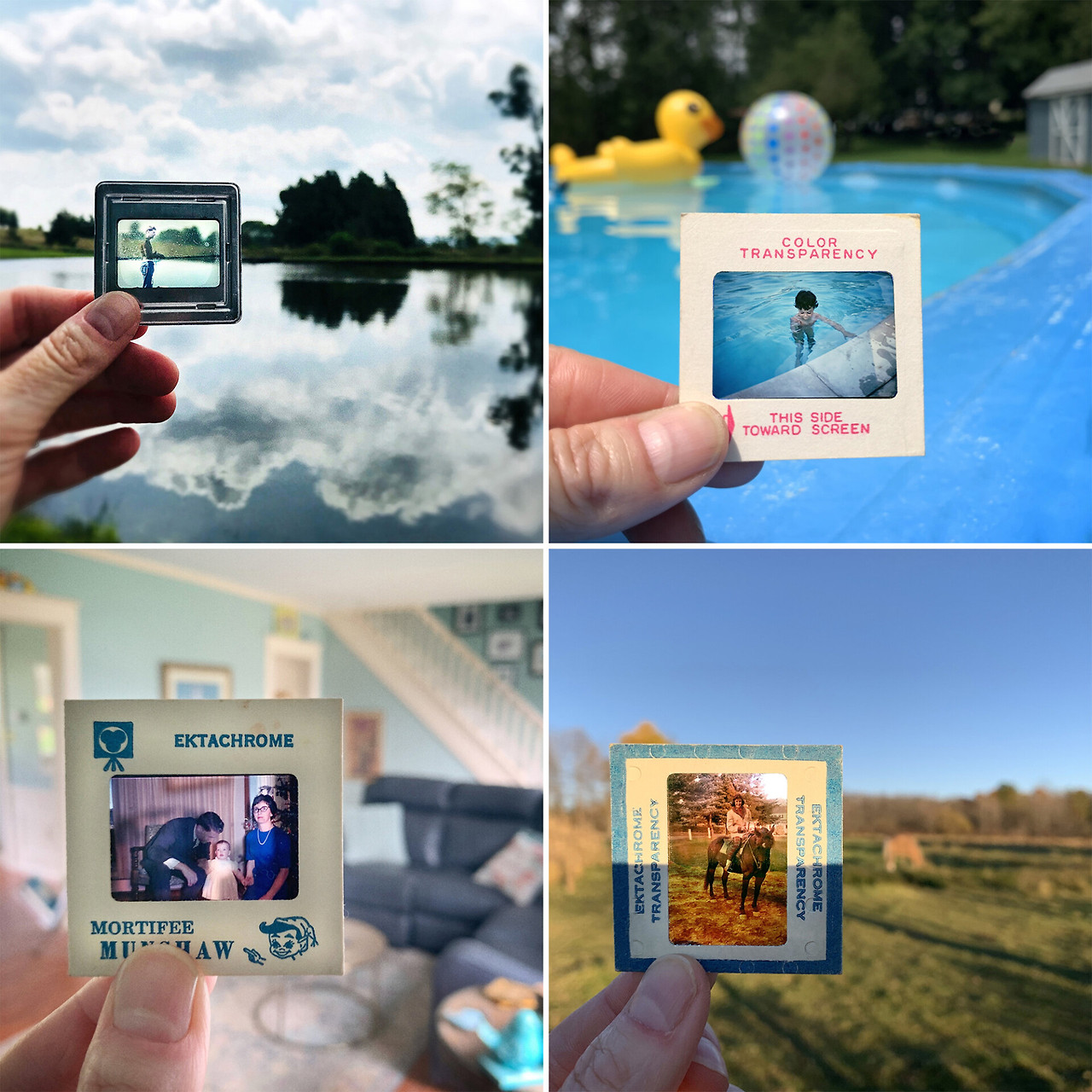 아주 오래된 슬라이드 사진 필름입니다. 사진 속 배경이 현재의 장면과 묘하게 어울리며 마치 시간을 뛰어넘는 듯한 분위기가 연출됩니다. 미국에서 활동하고 있는 사진작가 캐서린 판비안코(Catherine Panebianco)의 'No Memory Is Ever Alone'라는 프로젝트입니다.