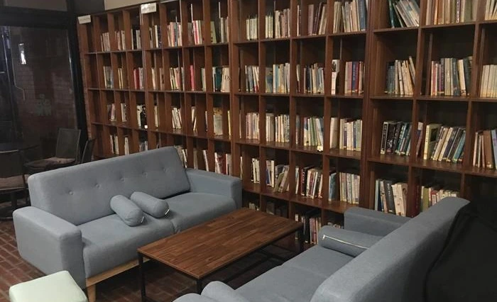 가톨릭 서적을 비롯한 다양한 책들이 벽면 서가에 꽂혀있다. 공간이 넓어 눈치보지 않고 책을 읽을 수 있다.