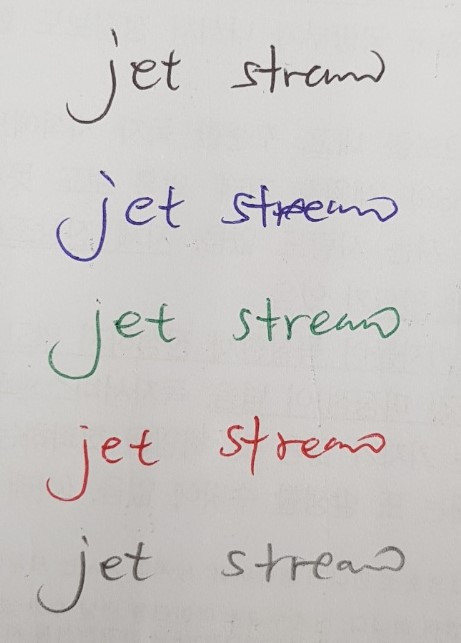 4색 볼펜(흑, 적, 청, 녹) + 샤프(0.5mm)로 구성돼 있다. 뭐 필기감, 진하기 같은 부분에는 불만이 없다. 제트스트림이니까!