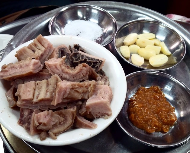 뚝배기에 넉넉히 담긴 수육과 잘 토렴(밥에 국물을 여러번 부었다 따랐다하며 덥히는 것)된 국밥을 한 숟가락 크게 떠넣는다.