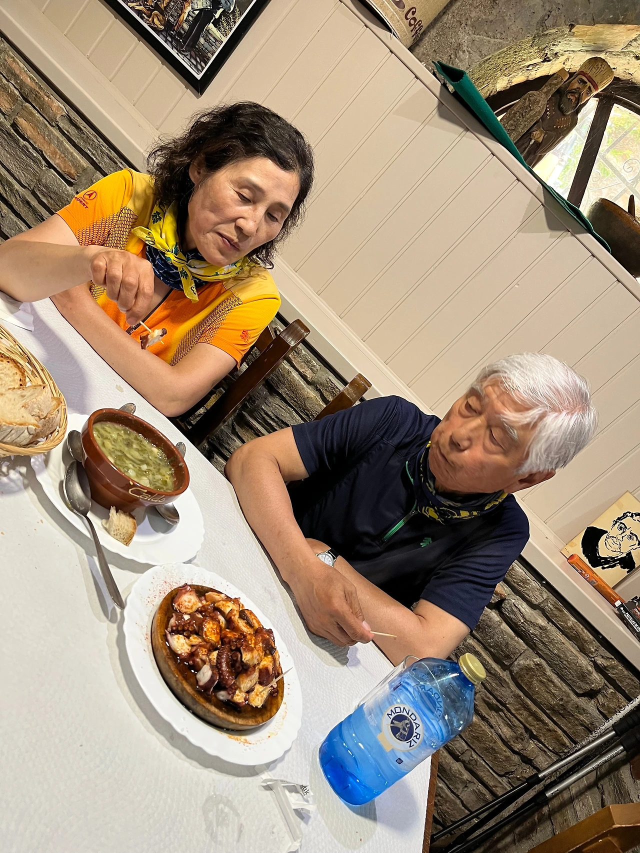 지난 번에 뽈보를 맛있게 먹었던 식당으로 가서 점심을 먹었다. 뽈보는 여전히 맛있었고 스테이크도 좋았다. 식사를 마치고 이곳에서 장을 보고 가기로 했다. 오늘이 일요일이라 다음 마을에 슈퍼가 열지 않았을 수도 있기 때문이다. 순례길에서는 늘 일요일을 잘 확인해야 한다. 도시가 아닌 이상 슈퍼도 정말 잠깐 열거나 열지 않을 수도 있다.