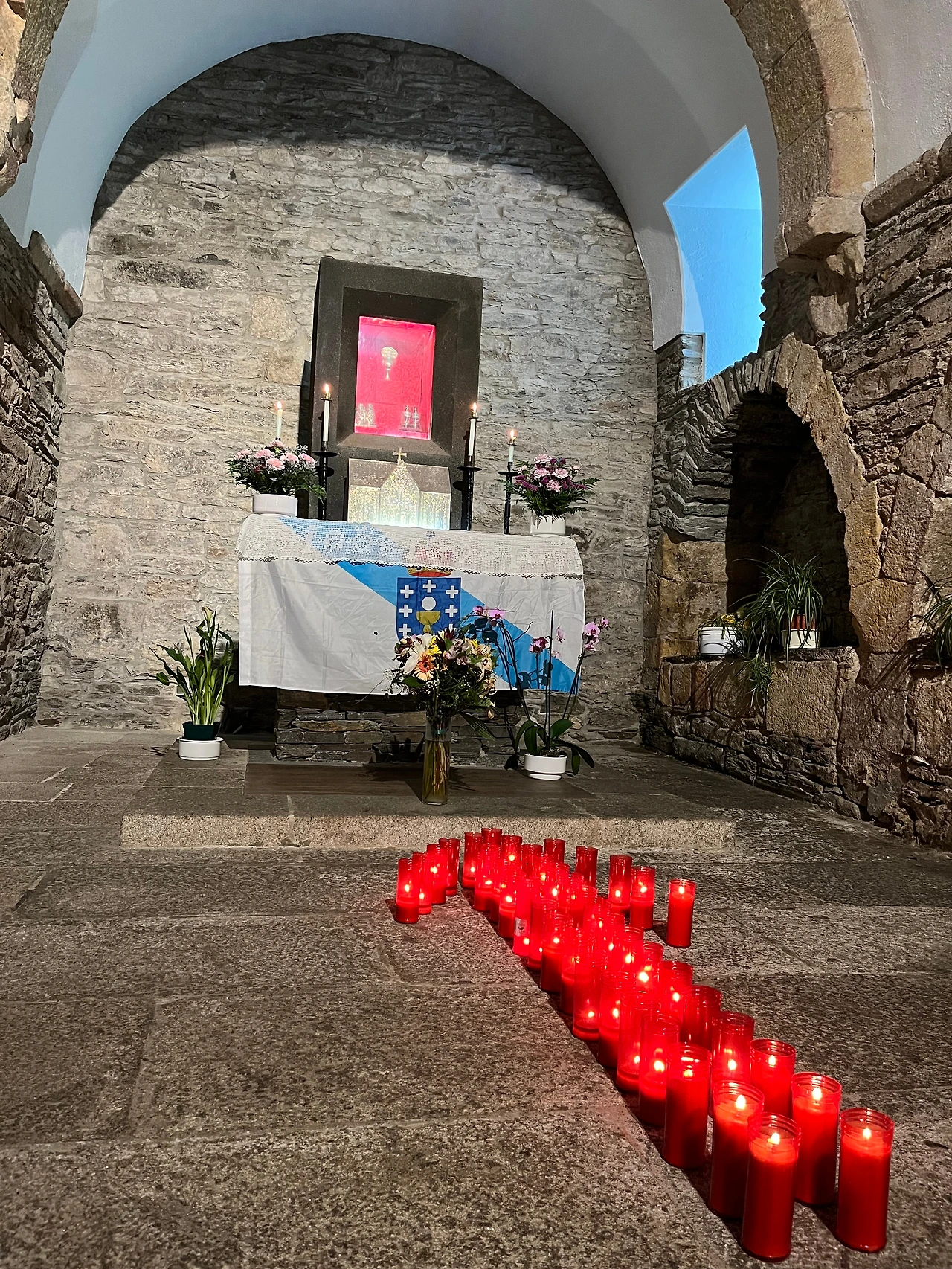 때마침 성당에서는 주일 미사가 진행되고 있었다. 저녁 미사가 아니고 순례자를 위한 미사가 아니라 화살표가 그려진 돌을 받거나 순례자 강복을 받지는 못했다. 그렇지만 부모님과 성체의 기적이 있는 이곳에서 미사를 드릴 수 있어서 좋았다.
