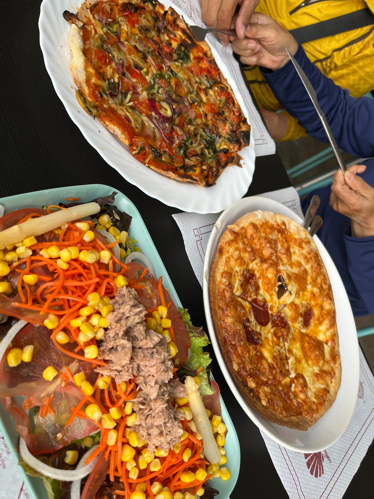 그래서 저녁은 멀리 가지 않고 알베르게 아래에 있는 피자 가게에서 피자와 샐러드를 먹었다. MTV 같은 프로그램을 틀어줬는데 나름 신선했다. 저녁을 먹고 산책도 할 겸 성당에 갔으나 문이 잠겨있었다.