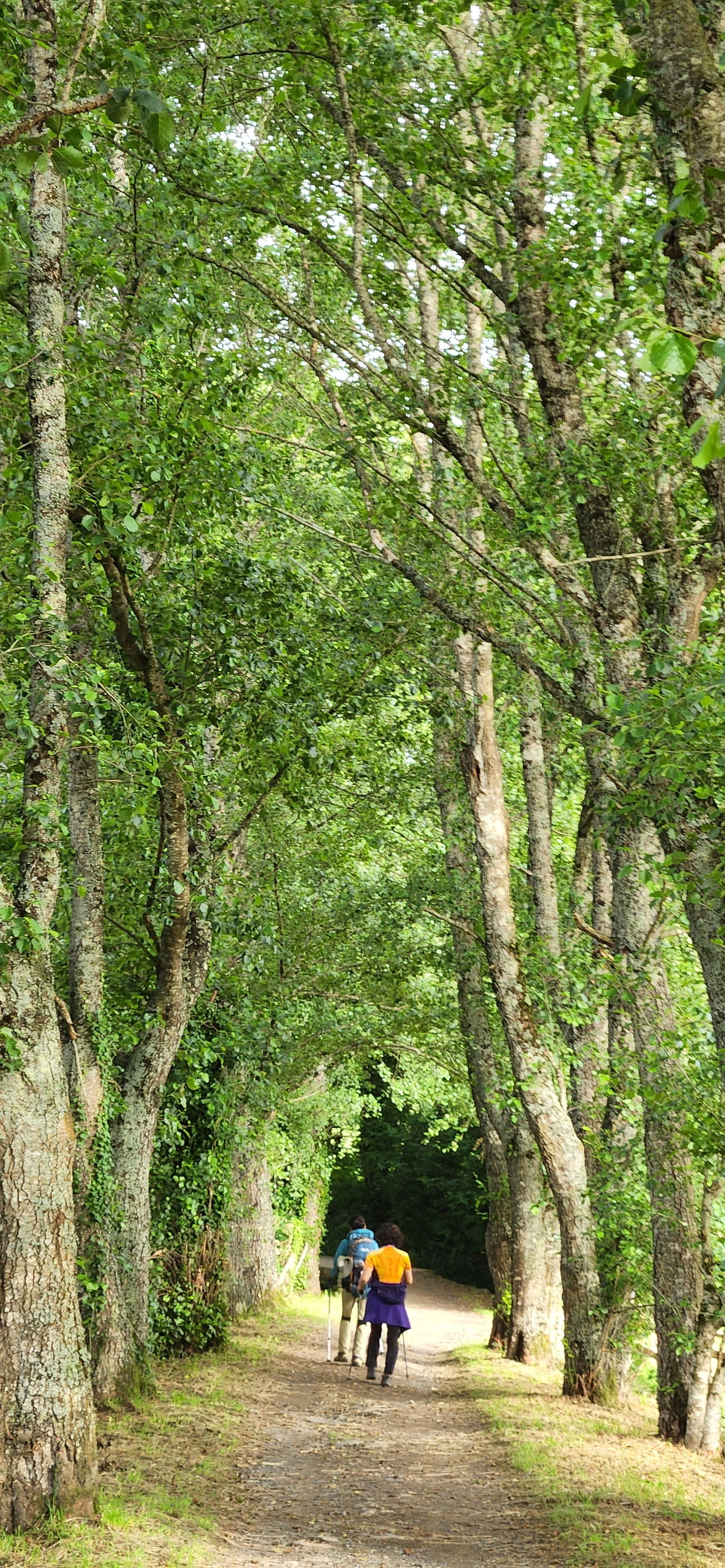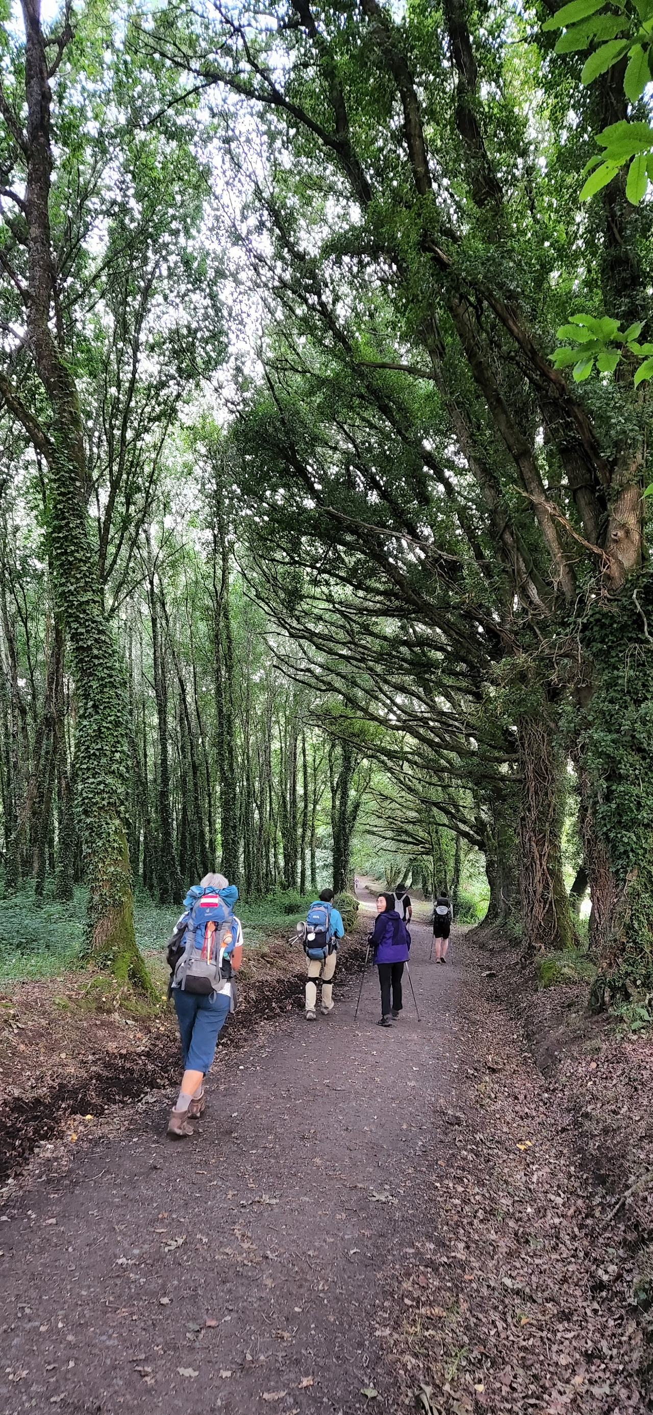 터널 같은 숲 속 길에서 즐겁게 사진을 찍고 있는 브라질 친구들도 만났다. 이들은 사리아에서부터 출발했고 그날 아침부터 우리와 자주 마주쳤다. 100km 비석에서도 서로 사진도 찍어주고. 유쾌한 친구들과도 함께 사진을 찍었다. 브라질도 꽤 멀 텐데 의외로 브라질 분들이 많이 오신다.