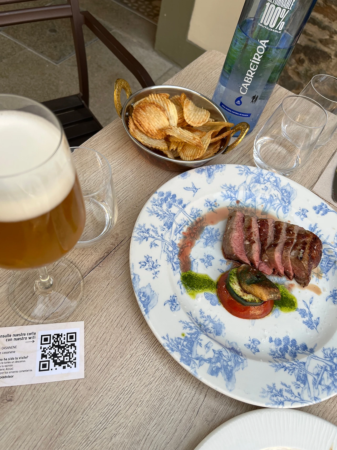 숙소에서 씻고 빨래를 하고 조금 쉬다가 저녁을 먹으러 마을로 내려갔다. 처음 찾은 식당은 오늘 휴무여서 두 번째로 찾은 식당으로 갔더니 예전에 묵었던 공립 알베르게 앞에 있는 식당이었다. 왠지 모르게 반가운 마음이 들어서 부모님께도 예전에 이곳에 묵었다는 이야기를 나누며 식사를 기다렸다.