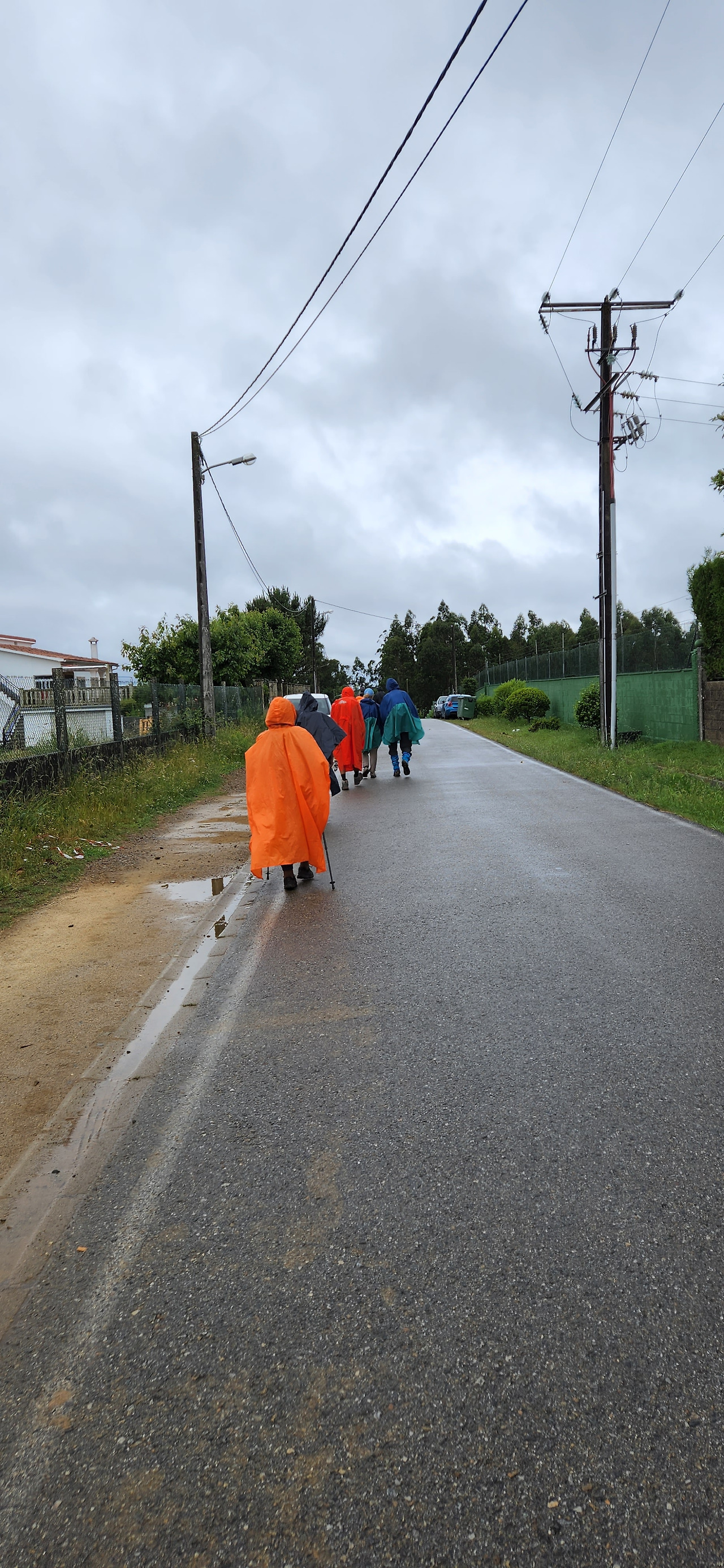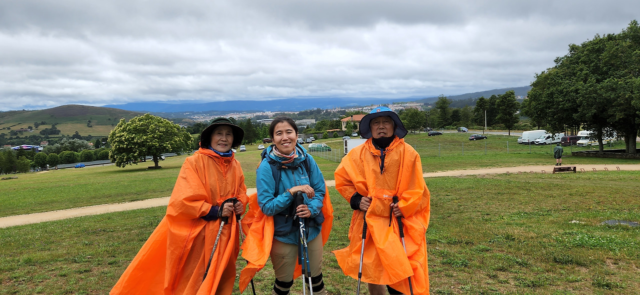 어젯밤 숙소 근처에서 축제가 열렸다. 늦은 시간까지 시끄러운 음악 소리과 불꽃놀이가 이어져서 잠을 잘 수가 없었다. 그래서인지 컨디션이 별로이다. 거기에 비까지 세차게 내린다. 산티아고는 역시 우리를 쉽게 맞이해줄 생각이 없나보다. 비가 조금이라도 그치길 바라면서 날씨 어플을 보지만 야속하게도 하루 종일 비가 내릴 예정이란다. 결국 우비를 꺼내입고 출발했다.