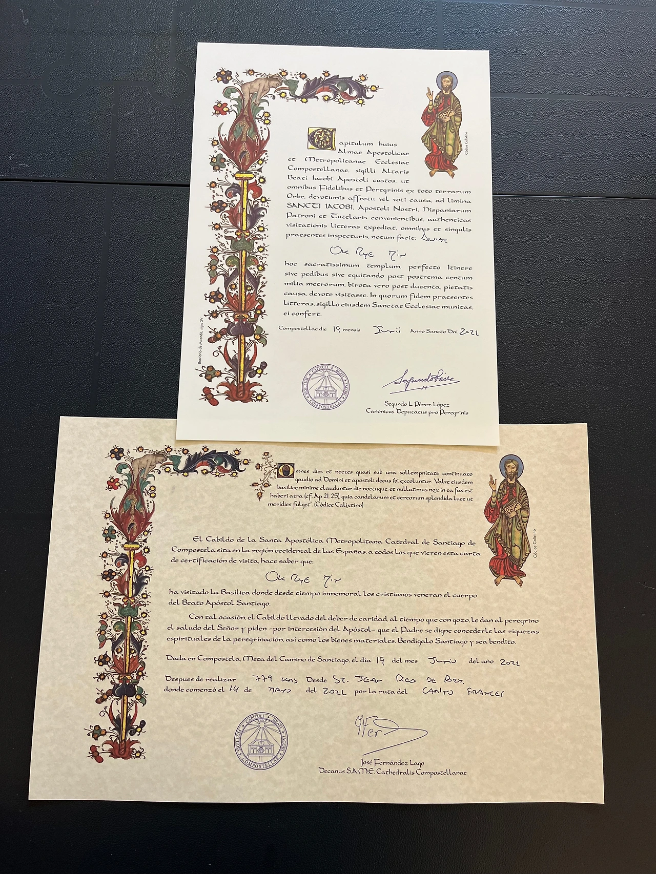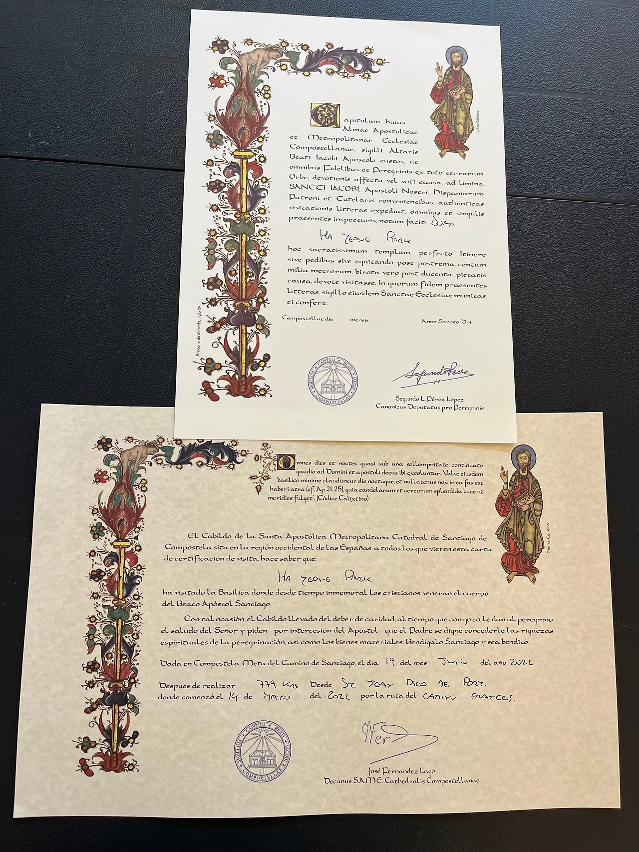 광장에서 기념사진을 찍고 있을 때 순례길 후반부터 계속 마주치던 미국인 친구들을 만났다. 길에서 만나도 반갑지만 이곳에서 만나는 건 기분이 아주 다르다. 함께 졸업하는 느낌이랄까. 부모님도 처음엔 담담했으나 이들과 인사를 하며 오히려 울컥하신 거 같았다. 그동안의 시간이 기억나셨겠지.
