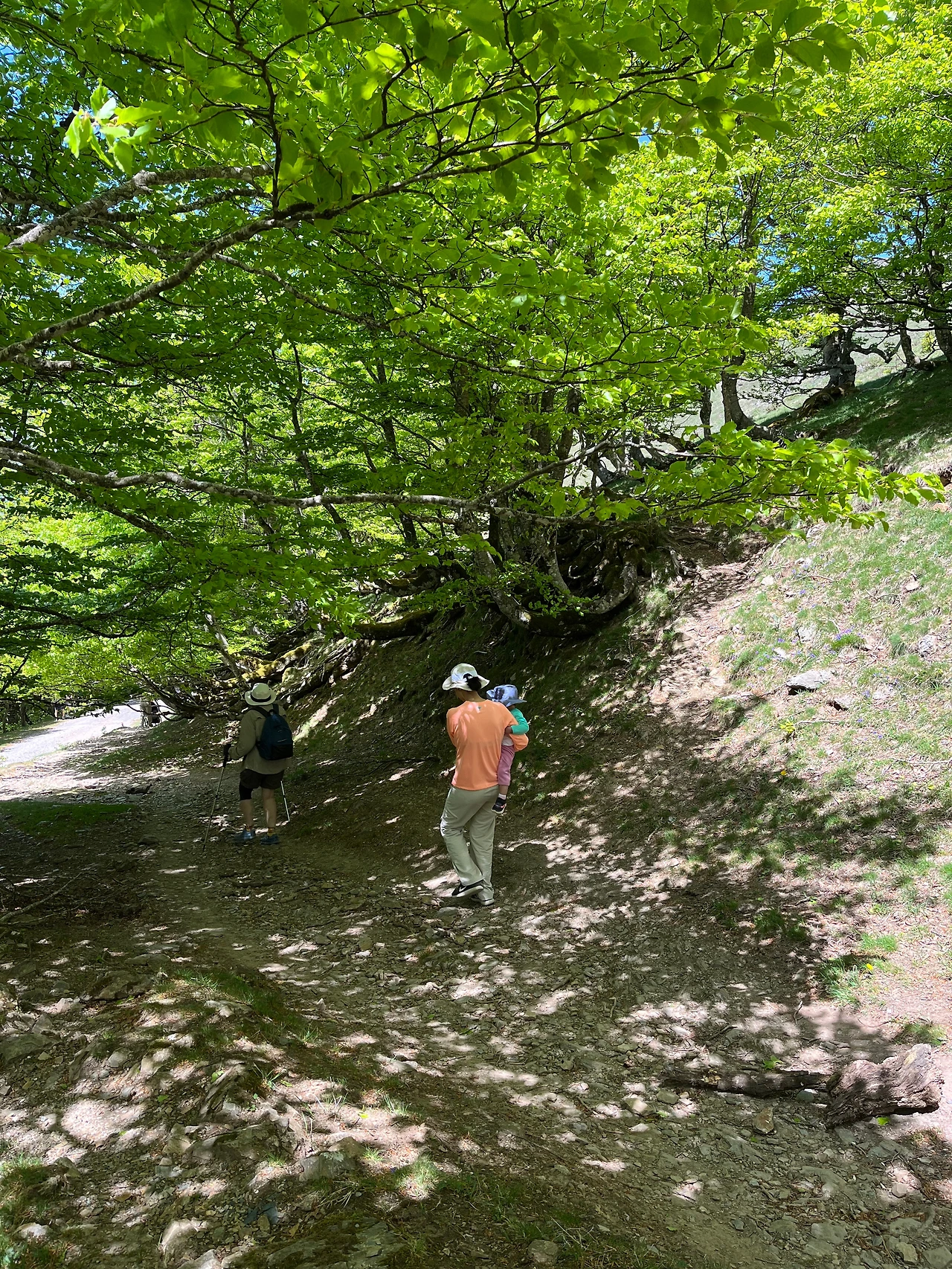 산 정상에서 도시락으로 싸온 도시락을 먹으며 잠시 쉬었다. 두 분이 몸이 아프고 난 뒤에 처음으로 오르는 높은 산이다. 이틀에 나눠오르긴 했으나 잠과 식사가 편안하지 못한 상태였기 때문에 꽤 힘드셨을 것이다. 아빠도 자신이 이렇게 높은 곳에 와 있다니 성취감을 느낀다고 하셨다. 이제는 긴 내리막의 시작이다. 이곳에서 내리막 방향을 잘 잡아야했다. 지난 번에는 안개에 비가 내려 길을 잘못 들어서 경사가 심한 내리막으로 갔다. 이번에는 엄마 무릎을 위해서라도 좀 돌아가지만 내리막 경사가 심하지 않은 곳으로 가야했다. 날씨가 맑으니 바닥 표시가 잘 보였다.