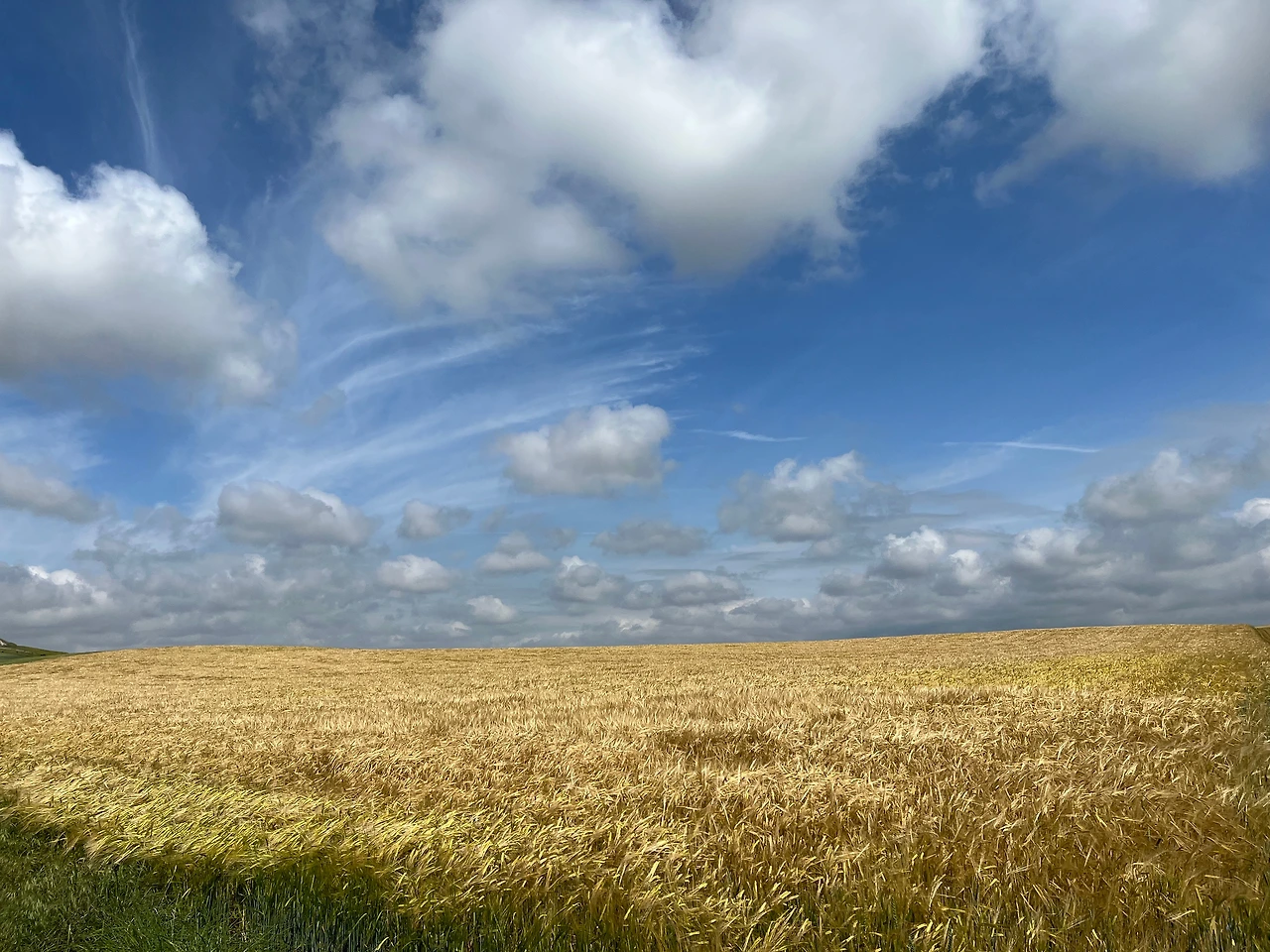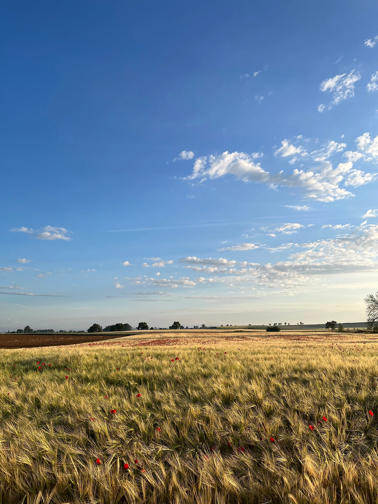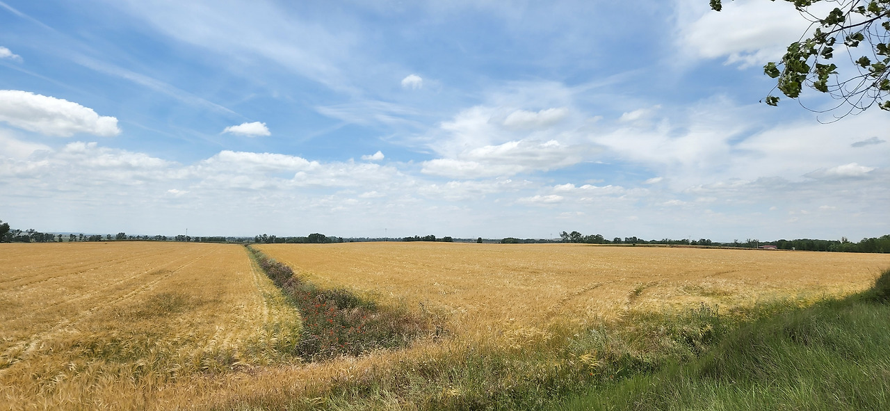 그리고 초록의 밀밭은 어느덧 황금색을 자랑하고 있었다. 마치 가을의 황금 녘 들판을 보는 듯했다. 제대로 눈요기를 하며 첫 마을을 만났는데 바에 사람이 너무 많았다. 마을을 자주 만나는 날이 아니고 어제가 일요일이어서 배낭에 간식거리도 많지 않았다. 그렇지만 컨디션이 나쁘지 않아 그냥 조금 더 걸어가기로 했다.
