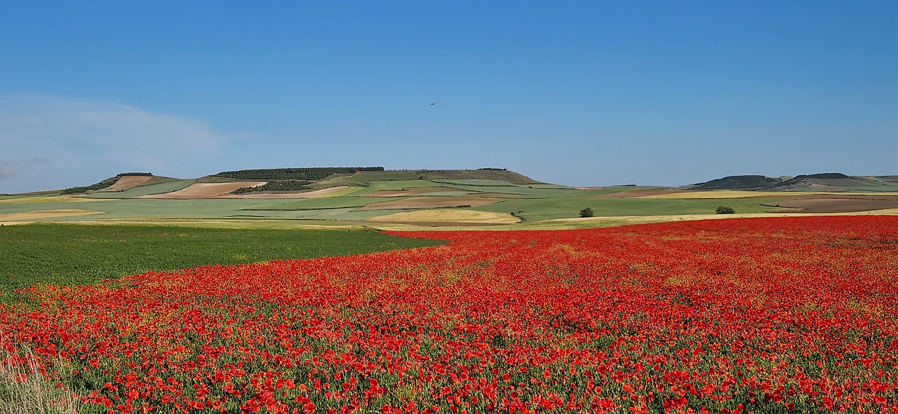 빨간색의 정체는 양귀비꽃이었다. 그동안은 밀밭 속에 한 두 개씩 피어있는 걸 본 것이 다였는데 양비귀꽃밭이라니. 새빨간 색이 정말 화려했다.