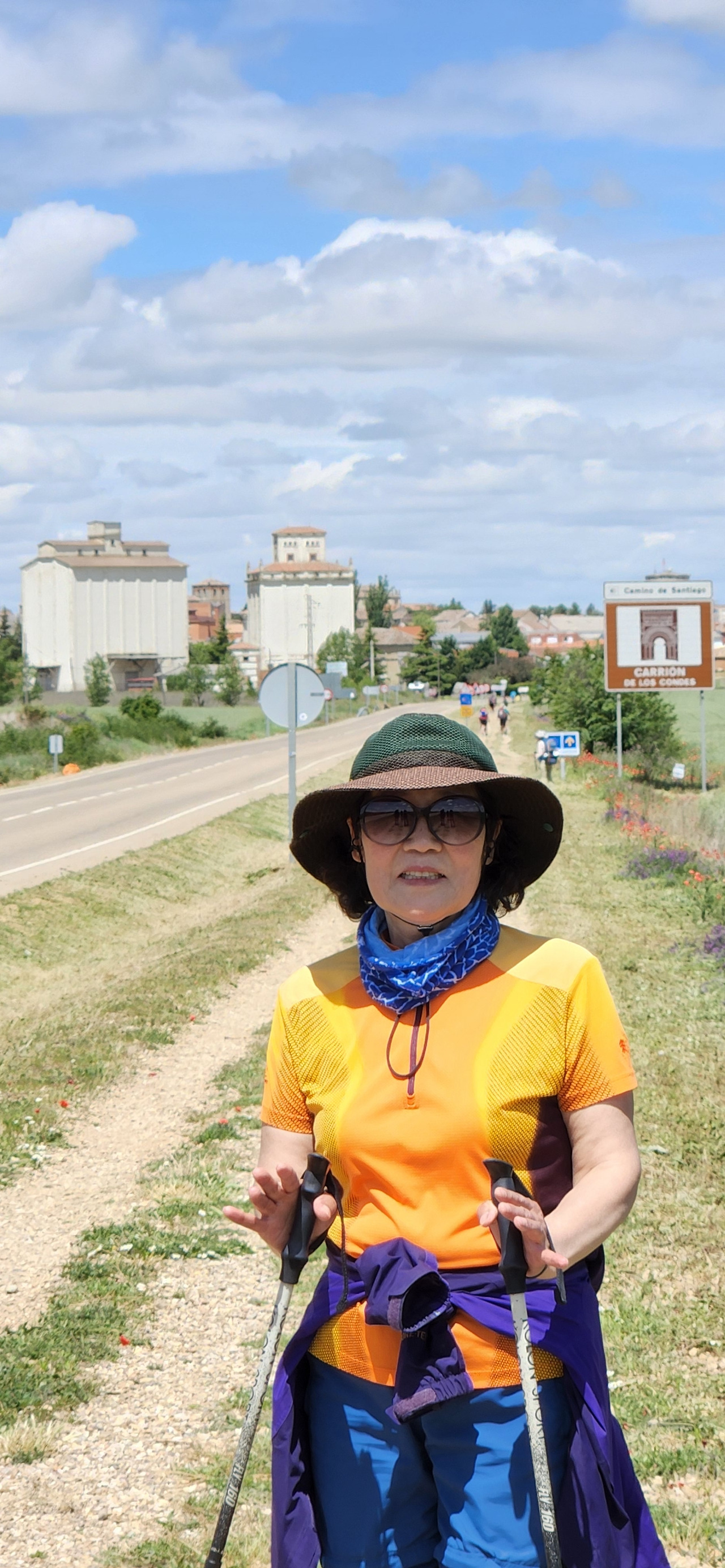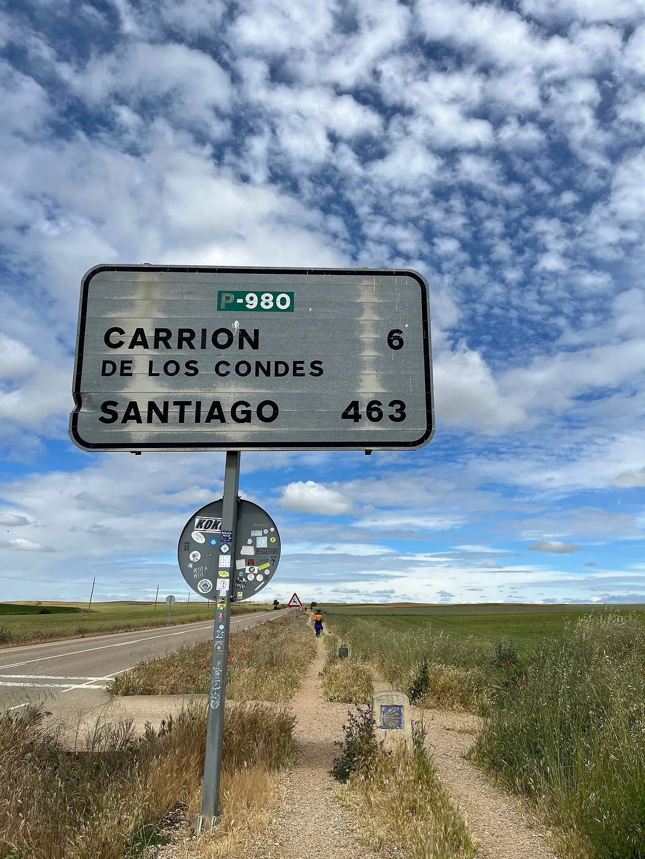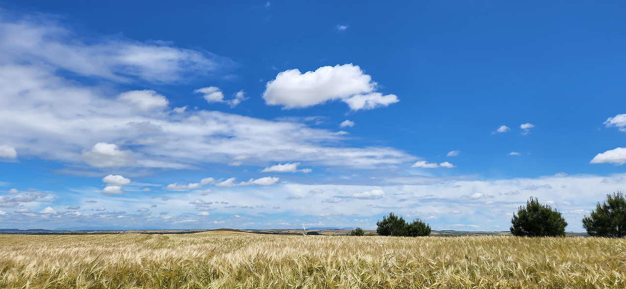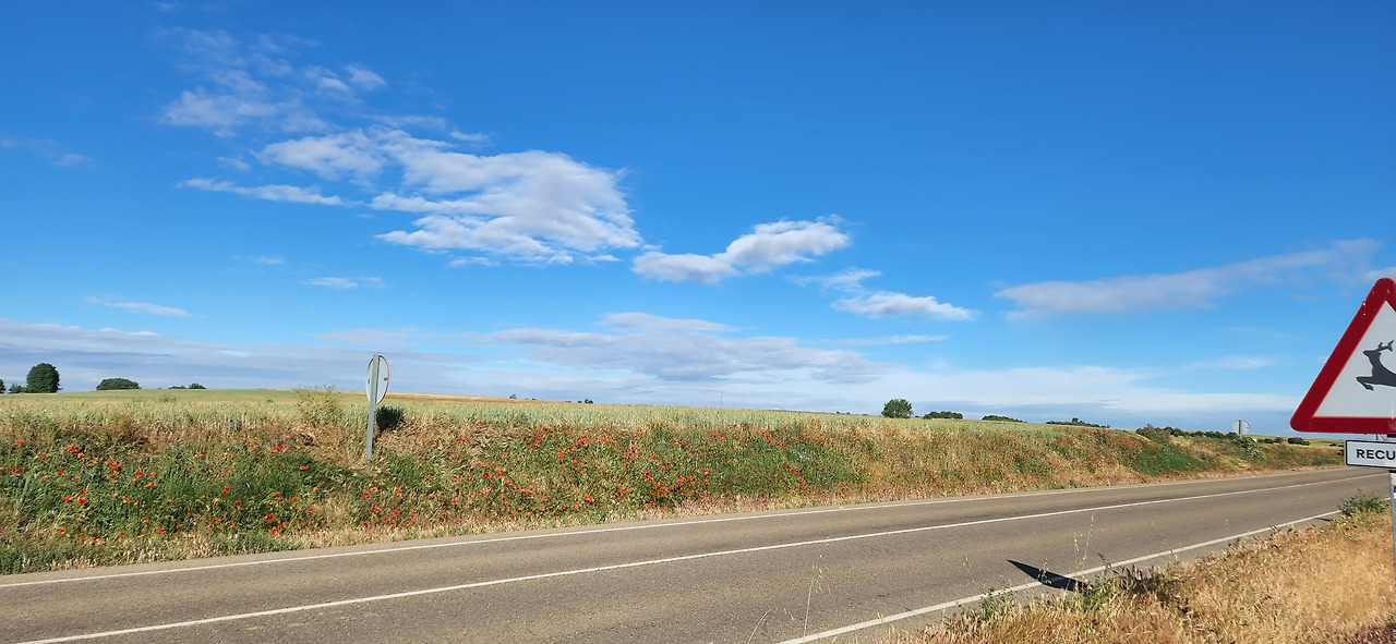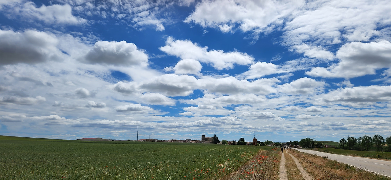 도로에는 차량 통행이 거의 없어서 그나마 다행이었다. 생각보다 지루한 길인데 구름이 예뻐서 사진을 많이 찍었다. 길이 쭉 뻗어있어서 순례자들과 앞서거니 뒤서거니 하면서 걷기에 다양한 사람들과 스몰토크를 했다. 독일에서 온 77세 할머니께서는 제일 친한 친구가 한국에서 온 간호사라고 하셨다. 같이 온 친구가 다리가 아파서 친구는 택시를 타고 이동하고 할머니는 천천히 혼자 걷고 있다고 하셨다. 세계 공통 화제인 손주 자랑을 내게 하시면서 잠시 함께 걸었다. 그 연세에 친구와 떨어져 혼자 걷는 것이 쉽지 않을 텐데 각자의 순례를 지키면서 동행을 하신다는 게 대단해 보였다.