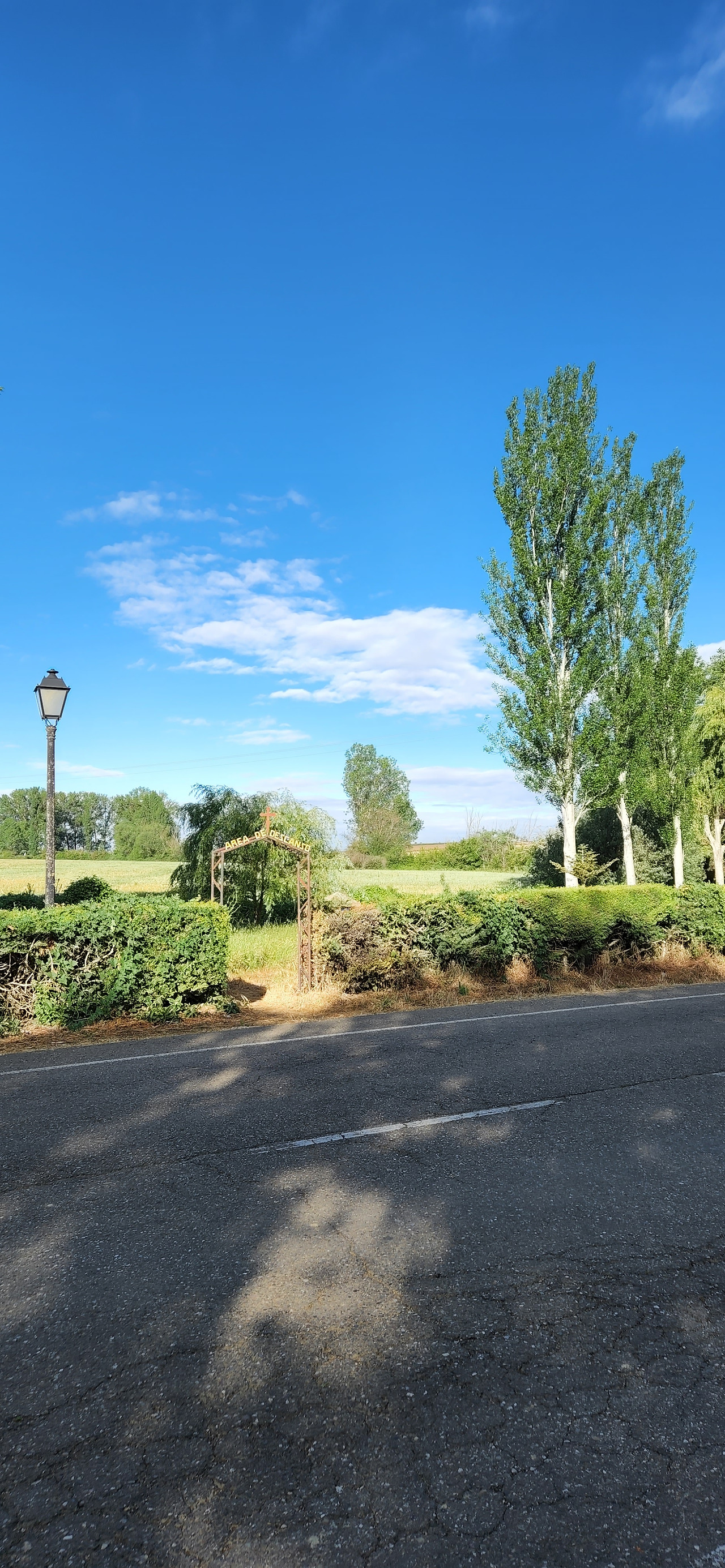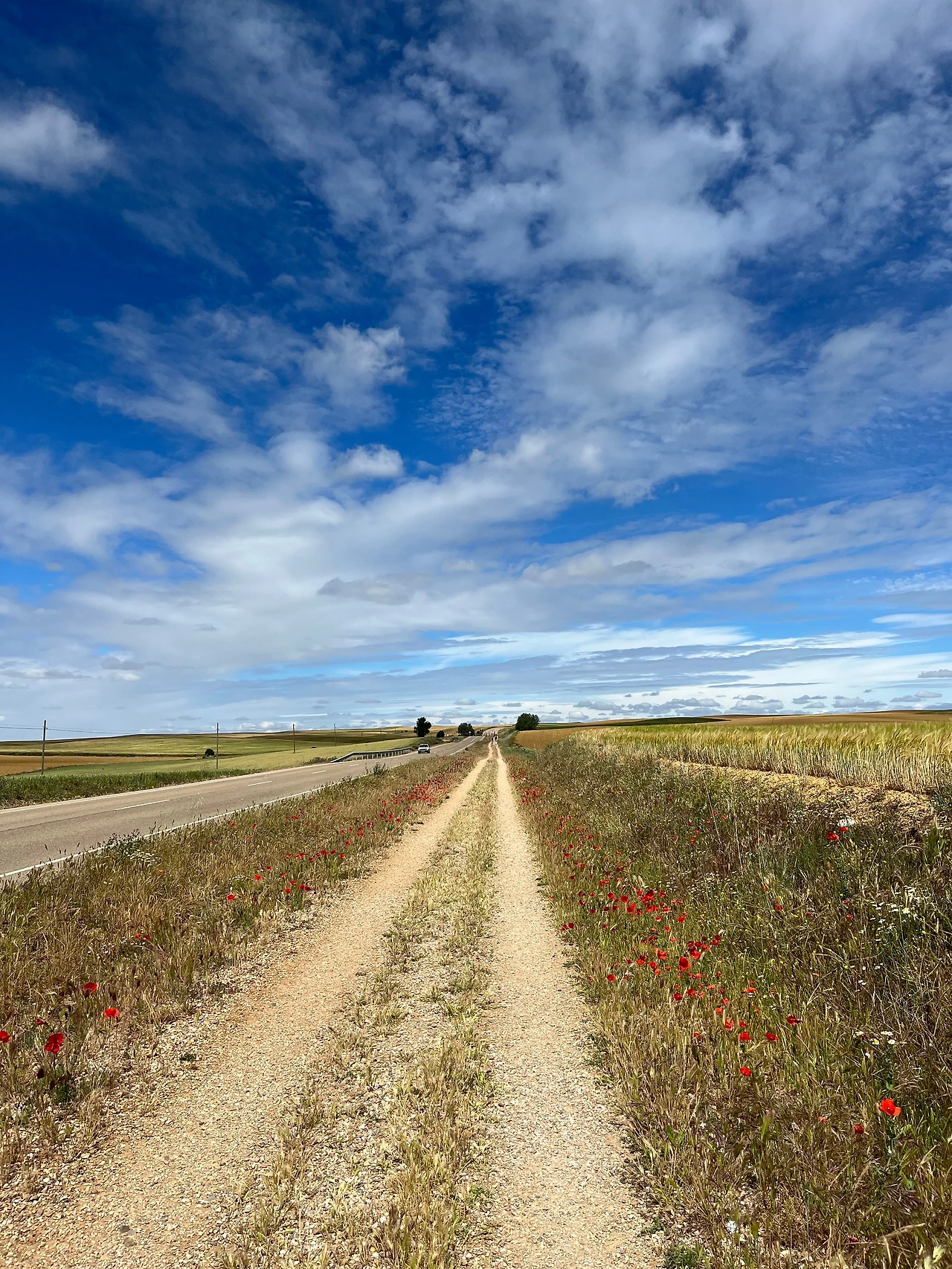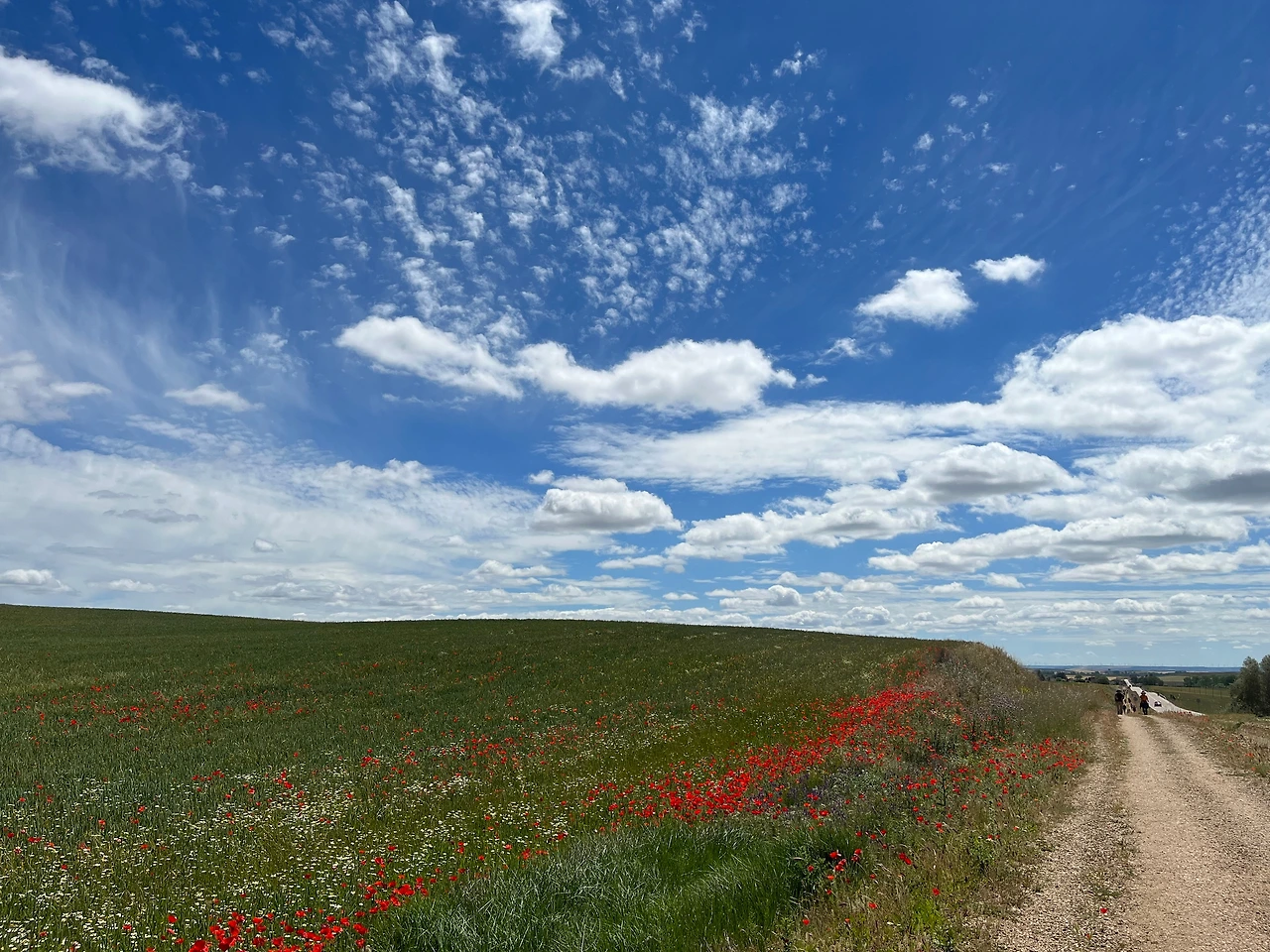 도로에는 차량 통행이 거의 없어서 그나마 다행이었다. 생각보다 지루한 길인데 구름이 예뻐서 사진을 많이 찍었다. 길이 쭉 뻗어있어서 순례자들과 앞서거니 뒤서거니 하면서 걷기에 다양한 사람들과 스몰토크를 했다. 독일에서 온 77세 할머니께서는 제일 친한 친구가 한국에서 온 간호사라고 하셨다. 같이 온 친구가 다리가 아파서 친구는 택시를 타고 이동하고 할머니는 천천히 혼자 걷고 있다고 하셨다. 세계 공통 화제인 손주 자랑을 내게 하시면서 잠시 함께 걸었다. 그 연세에 친구와 떨어져 혼자 걷는 것이 쉽지 않을 텐데 각자의 순례를 지키면서 동행을 하신다는 게 대단해 보였다.