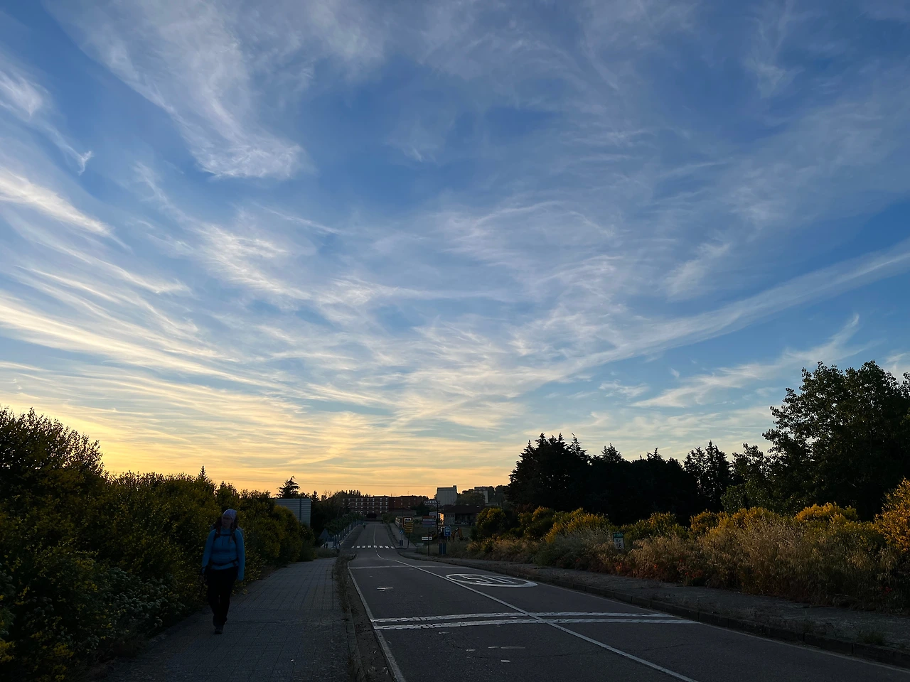 꽤 이른 시간에 출발했다. 대부분 7시가 넘어서야 출발하는데 오늘은 준비가 빨랐다. 순례길에 점점 적응한다는 증거일 것이다. 길을 걸으니 등 뒤에서 해가 뜨기 시작했다.